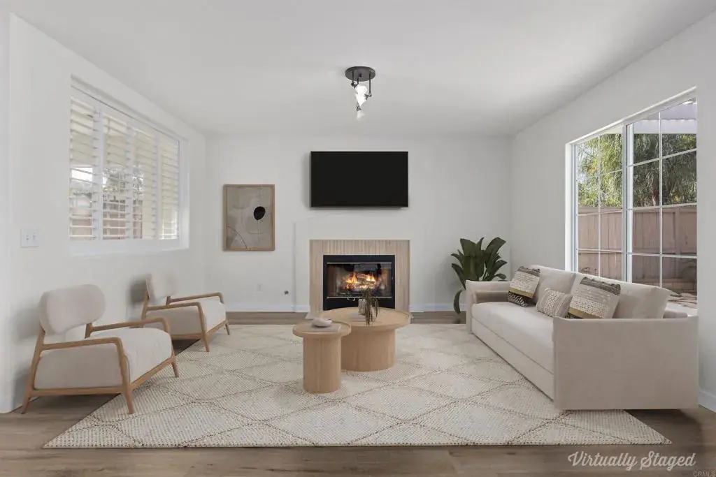 NO HOA — Welcome Home to Discovery Hills Living Tucked away on a quiet, non-through street, this beautifully updated two-story home offers the perfect blend of comfort, connection, and outdoor adventure in the heart of Discovery Hills. Freshly painted with new flooring throughout, the home feels bright, clean, and truly move-in ready from the moment you arrive. Step inside to an inviting open layout where spacious living areas flow effortlessly from one to the next. Cozy up by the gas fireplace on cool evenings, or gather with friends and family in the generous family room that opens directly to the kitchen—making everyday living and entertaining feel easy and natural. The kitchen features a large pantry and indoor laundry, while a convenient downstairs half bath makes hosting a breeze. Out back, your private yard becomes a true extension of the home. Enjoy alfresco dinners beneath the pergola-covered patio, then unwind around the built-in fire pit as the sun sets—this is the kind of backyard where memories are made. Upstairs, all bedrooms are thoughtfully placed together, along with a versatile loft perfect for a home office, play space, or cozy media retreat. Each bedroom offers ample closet space, while the shared bath includes dual vanities for busy mornings. The primary suite feels like a peaceful escape, featuring vaulted ceilings, a serene en-suite bathroom, and a large walk-in closet. Beyond the front door, you’re just steps from scenic walking trails leading to Discovery Lake or hiking adventures toward Devils Peak—perfect for morning strolls, weekend hikes, or sunset views. Located within the highly regarded San Marcos Unified School District, this home also offers access to excellent schools and a strong sense of community. With limited traffic, peaceful surroundings, fresh updates throughout, and no HOA, this is more than just a house—it’s a lifestyle. A place to slow down, spread out, and truly enjoy where you live. *Some photos have been Virtually Staged*