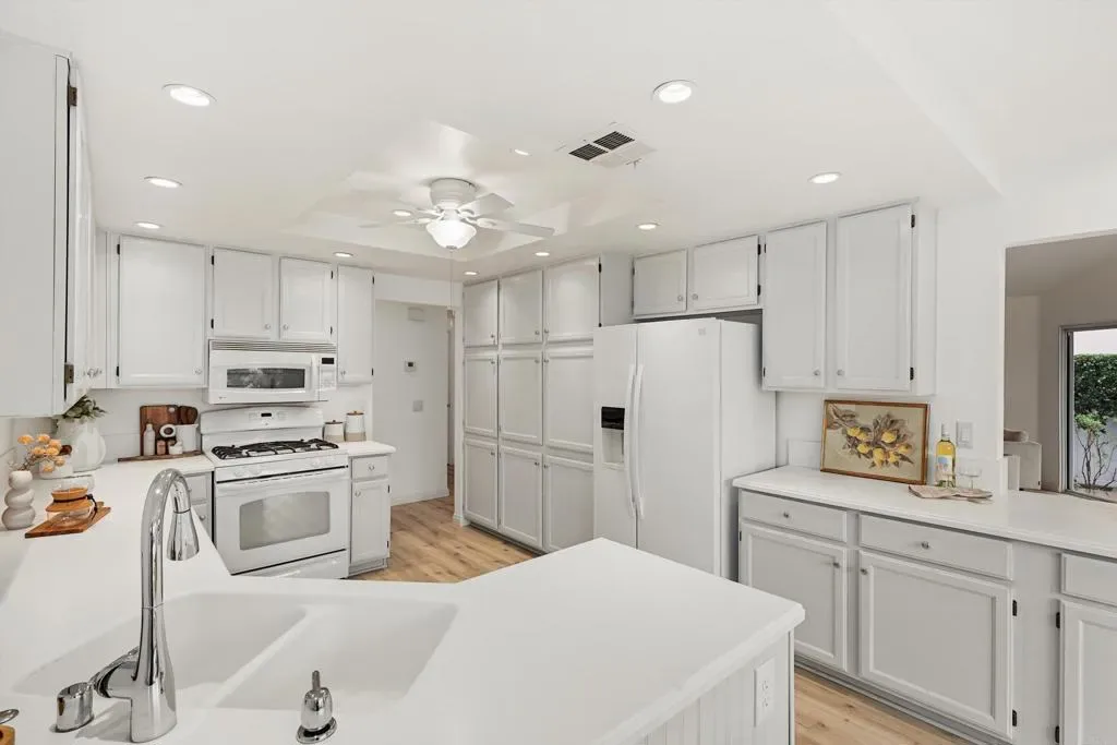 Best Value in Lake San Marcos! Welcome to 1349 Via Firenze – a single story home with a wrap around patio that gives you privacy and serene views. This 3 bedroom condo comes with vaulted ceilings, large kitchen area, primary suite secluded from the rest of the home and multiple sliding doors that lead you out to your private patio. This home is move-in ready complete with brand new luxury vinyl plank flooring throughout, a fresh paint job, fully finished garage with epoxied floor and storage and is one of the best values in Lake San Marcos! No stairs or steps throughout! Your HOA dues gives access to community pools, pickleball/tennis courts, access to Lake San Marcos itself, 24/7 security patrol and is walking distance to one of the two amazing golf courses that Lake San Marcos has to offer. Situated on a private cul-de-sac with only 9 homes. Right around the corner from award winning restaurants and The Lakehouse Hotel. 24 hour security patrol included as well, giving you peace of mind year round.