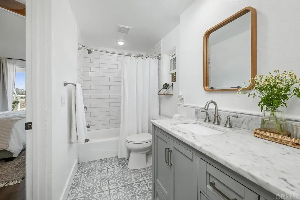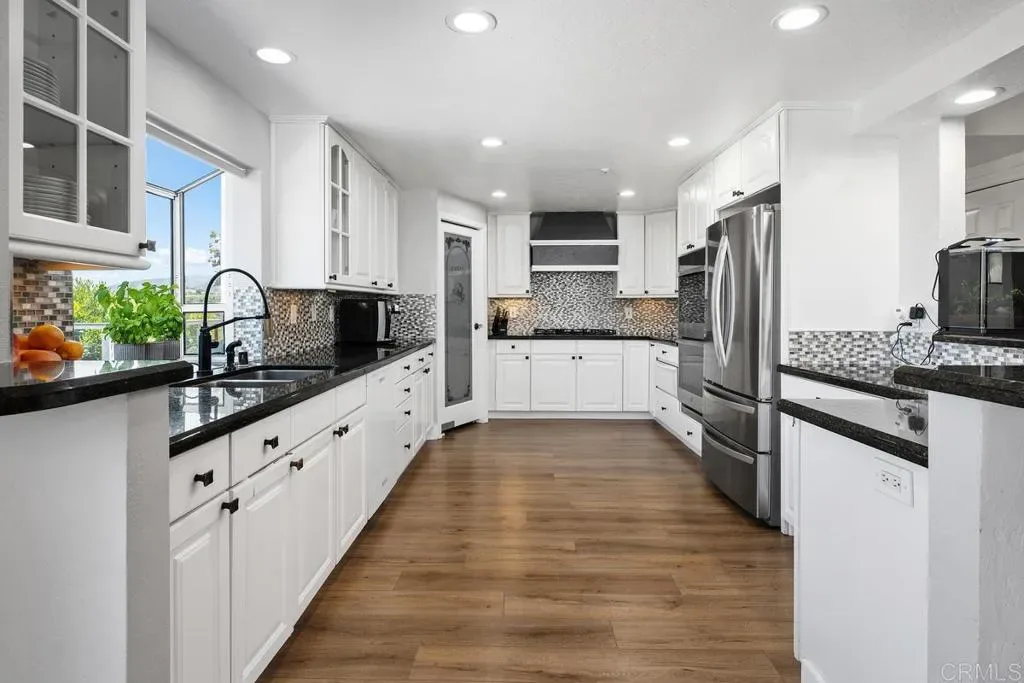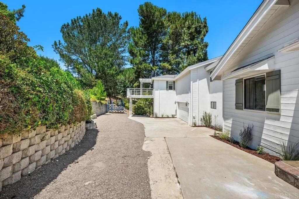 No HOA or Mello Roos with this 3,077 sq ft home. Set on an expansive 1.29-acre lot, enjoy privacy and amazing views in a peaceful setting. Natural light pours into this home with 3 bedrooms, 2.5 bathrooms, and a renovated studio apartment with its own kitchenette and bath; ideal for extended family, guests, or rental use. The main living area features an open layout with tall beamed ceilings and large windows that bring in natural light and showcase the spectacular surrounding views. The space feels open and functional, with a layout that’s easy to live in. The kitchen offers generous counter space, a walk-in pantry, and connects directly to the main living and dining areas, as well as the oversized deck. Upstairs, a loft overlooks the main level and includes an oversized closet/bonus space, providing a flexible space for a home office, gym, or additional living area. The primary bedroom is spacious and private, with room for a sitting area or workspace. It includes an oversized cedar-lined closet, an en-suite bathroom, and access to two separate decks. The additional bedrooms are comfortably sized and share an updated Jack-and-Jill bathroom. Outside, the property is quiet and peaceful, with mature landscaping and a variety of fruit trees, including orange, kumquat, lemon, guava and more. The patio and outdoor areas offer multiple places to relax or gather, all with a sense of peace and privacy. Located close to shopping, schools, parks, and Lake San Marcos, this property offers space, flexibility, and a setting that’s hard to find.