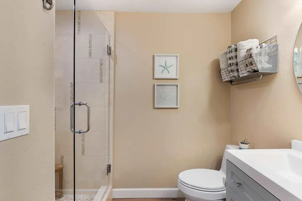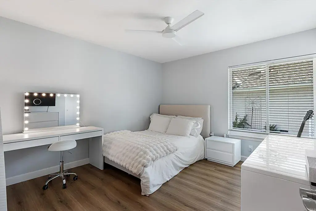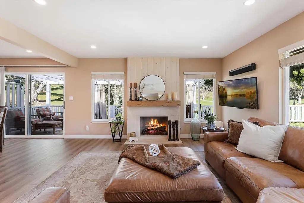 Like-new Country Greens home filled with character and perfectly placed on Lake San Marcos’ Links at Lakehouse gorgeous executive course for spectacular, sprawling golf course views and peaceful, easy resort-style living. Positioned on the 7th fairway in the back, and on a quiet cul-de-sac in front, this charming twinhome has OWNED SOLAR WITH ENERGY BANK and a FULLY-FENCED area adjacent to a large back patio. Exquisitely updated to include luxury vinyl plank wood-look flooring throughout, almost all-new kitchen with premium quartz counter tops and Spanish-made tile backsplash, full-face wood cabinetry with soft-close feature, large walk-in pantry with custom closet shelving and new stainless appliances including a range with air fryer! The inviting floorplan welcomes you in to a light and airy living space with views of the bright green golf course through newer, solar glass windows on either side of the recently designed custom marble and wood plank fascia that surrounds the gas fireplace. The pristine kitchen overlooks the dining area which is ideally located adjacent to the back patio so you soak up that outdoors feeling even while dining indoors! Or step out back and on to the golf course to take in the beauty of the hills and the trees! Updated bathrooms are beautifully appointed with art glass shower panel in primary bathroom, Kraftmaid cabinets and quartz counter tops, onyx tile on shower floors and frameless glass shower enclosure in guest bath. Other bonuses include newer: relocated plumbing, electric wiring, insulation, furnace and AC, hot water heater, garage door and opener, interior paint and custom closets throughout. The Country Greens community offers its own pool, hot tub, tennis, pickleball and basketball courts as well as membership with the Lake San Marcos lake and lodge pools, tennis courts, lake access, boat rentals, 24-hour security and more!