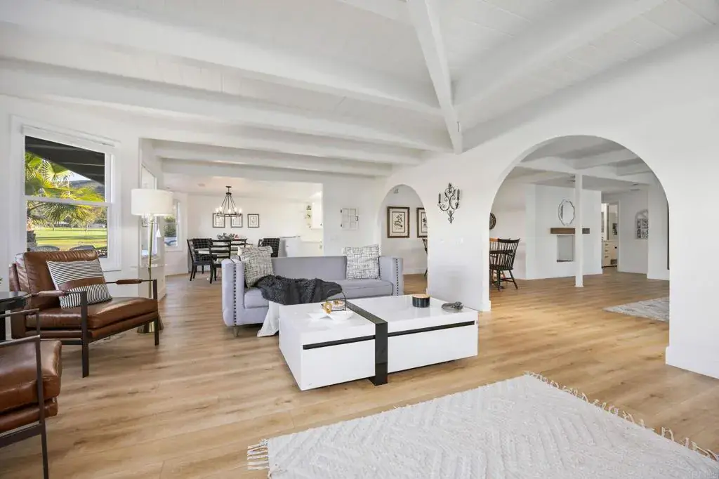 Lake Life Living with Golf Course Views-Overlooking the 9th green of The Links Golf Course, this refreshed and beautifully updated residence offers a light, bright, and move-in-ready feel in one of the most convenient locations in the community. Step inside to an open, flowing floor plan highlighted by graceful arched doorways and a stunning beam-and-plank ceiling that adds warmth, character, and architectural charm. Luxury vinyl plank flooring and additional windows installed to add to the brightness of the home. The kitchen features a functional, entertainer-friendly layout, perfectly suited for both everyday living and hosting gatherings with ease. The spacious primary suite is a true retreat, complete with a dual-sink vanity, soaking tub, separate shower, and a generous walk-in closet. Flexible space currently used as a bedroom could be an office, gym, playroom, studio or wellness room with its own large closet. Outdoors, a private garden invites you to enjoy morning coffee, alfresco dining, or peaceful evenings surrounded by serene golf course ambiance. Additional highlights include newer roof, windows, HVAC system, hot water heater, interior and exterior paint. Set on a coveted golf course view lot just steps from the clubhouse—and with no HOA fees—this home is also a short walk to the lake. Currently a successful Airbnb property. Lake San Marcos offers an exceptional lifestyle with golf, pickleball, swimming, dining, and endless lake activities. Plus, you’re minutes from some of Southern California’s best beaches, shopping, restaurants, LEGOLAND, and more. Come experience what Lake Life is all about.