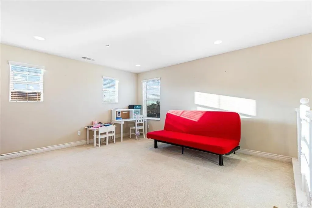 Welcome to this elegantly maintained 4-bedroom, 3-bath home in the desirable Rancho Santalina community of San Marcos! Built in 2013, this spacious 2,376 sq ft residence features an open-concept floor plan with a bright great room, modern kitchen with granite counters, stainless-steel appliances, and a large center island—perfect for entertaining. The downstairs bedroom and full bath are ideal for guests or a home office. Upstairs offers a generous loft, convenient laundry room, and a luxurious primary suite with a walk-in closet and spa-like bath. Energy-efficient with owned solar and dual-zone HVAC. Enjoy outdoor living with a private, low-maintenance backyard featuring paver patio, mature landscaping, and no rear neighbors. Located near top-rated schools, parks, and shopping with easy freeway access. Very Low HOA, move-in ready and beautifully upgraded throughout!