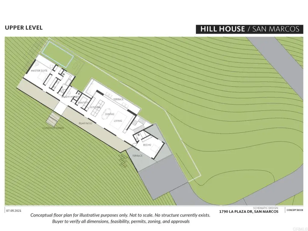 Gorgeous 5+acre property on a former avocado orchard in the hills above Lake San Marcos. Build your dream home with views west & north. The land abuts a canyon & is adjacent to 100+ acres of native coastal chaparral open space to the east. The ocean is 10-miles west & provides a steady breeze. Located next to large estate homes, the site is easy walking & bicycling distance to restaurants, shops, golfing, and The Lake. Note: San Diego County jurisdiction. CHA:COL, an AIA award-winning architectural firm, has drafted organic modern architectural and schematic designs that capture the best features of the site and the views. The firm has been profiled extensively with architectural work featured in Dwell, LA Times, New York Times, Modern Home, California Home & Design, in addition to Dezeen and HGTV.