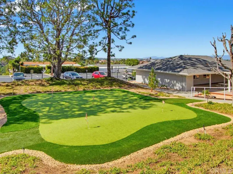Welcome to this beautiful 2 bedroom, 2 bath home in the desirable Palomar Estates West. At approximately 2,040 square feet, this residence is one of the largest homes in the community. Vaulted ceilings in the living and dining areas enhance the open, airy feel and create an inviting sense of space. The expansive kitchen features wood cabinetry, granite countertops, and an island ideal for both everyday living and entertaining. Wood laminate flooring flows throughout the main living areas, with tile flooring in the bathrooms and laundry room for added durability and style. The spacious primary suite offers a walk-in closet and a well-appointed en-suite bathroom complete with a tub, shower, and dual vanity. The secondary bedroom is currently set up as a home office with custom cabinetry and a built-in desk. Enjoy Southern California living at its finest with beautifully landscaped grounds and a large front and side patio, perfect for relaxing or entertaining outdoors. The property also includes two storage sheds for added convenience. Palomar Estates West is a desirable rent-controlled 55+/35+ senior community offering an array of amenities, including a clubhouse, pool, spa, fitness center, putting green, pickleball courts, and tennis courts. Ideally located just minutes from shopping, restaurants, golf courses, as well as our beautiful Carlsbad beaches. Please note that some photos have been virtually staged.