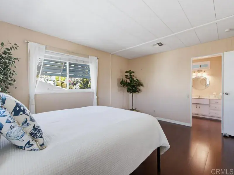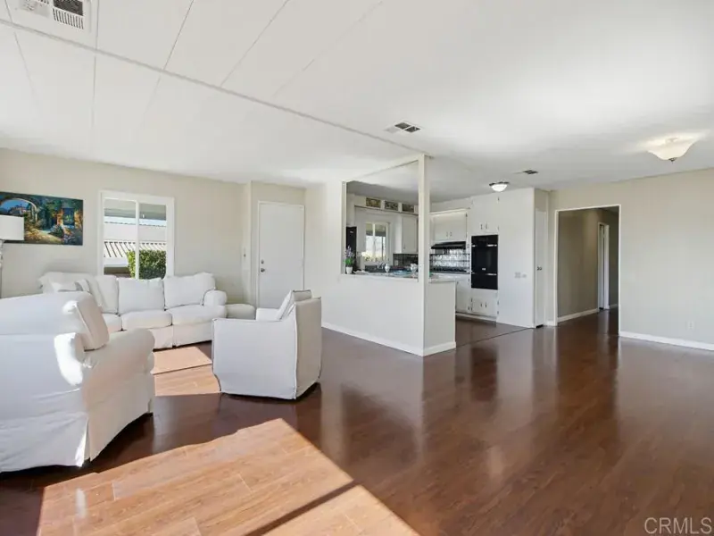 Ocean Views!!! Beautiful ocean view home located in highly desired Palomar Estates West. This home has a wonderful open floorpan to make it feel very spacious. Wood laminate floors are throughout the home. This home has dual-pane vinyl windows that will keep the home a wonderful temperature in the temperate San Marcos climate. Enjoy the amazing ocean breezes from your large front porch. This home is on registration which means NO PROPERTY TAXES. Palomar Estates West is a 5 star 55+/35+ senior rent controlled park with many activities and amenities including a beautiful clubhouse, pool, spa, gym, putting green, pickleball courts, and tennis courts. This home is located minutes to Lake San Marcos dining and golf as well as local Carlsbad beaches, shopping, and restaurants.