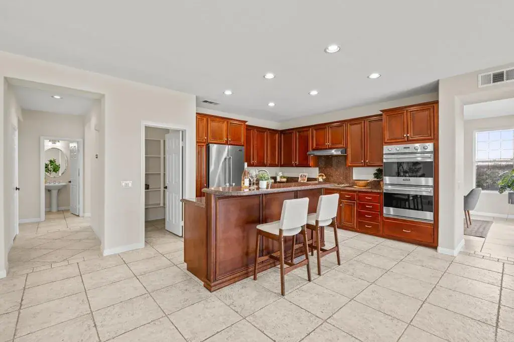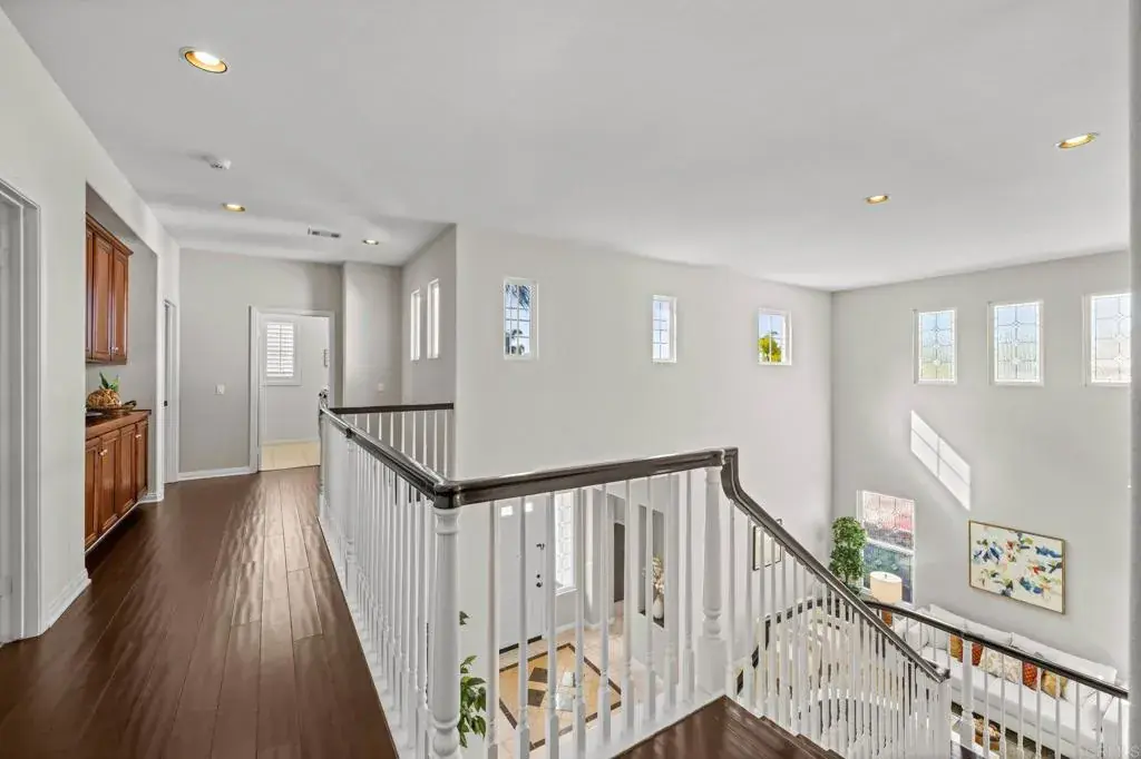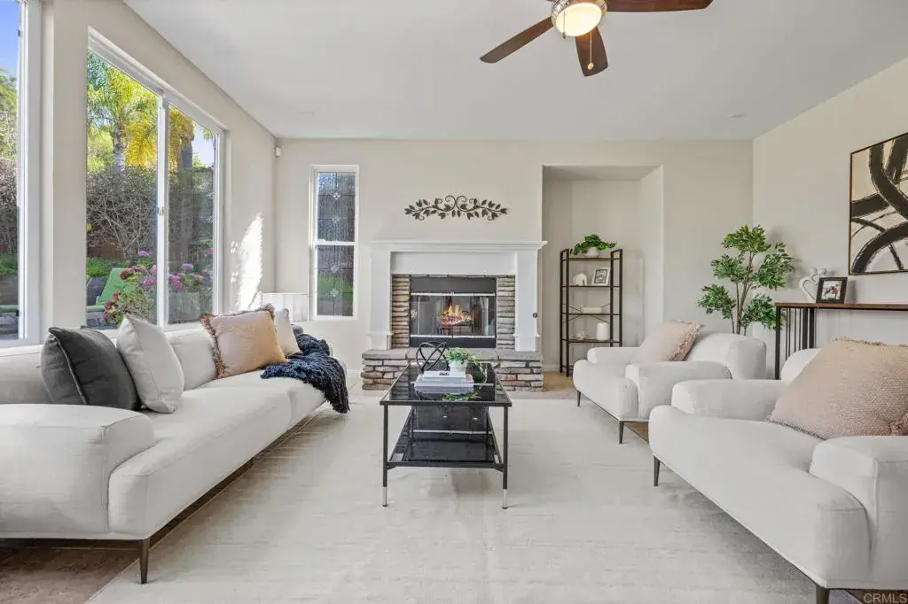 Welcome to this well maintained home in the highly sought-after Rancho Dorado community of San Marcos known for its charming streets, peaceful ambiance, and close-knit feel. From the moment you step inside, you’ll notice how thoughtfully this floor plan has been designed to bring comfort, connection, and effortless living together. The expansive family room is truly the heart of the home, featuring a dreamy gas fireplace perfect for cozy evenings, and large picture windows that flood the space with natural light while framing serene views of the backyard. A highly desirable downstairs bedroom with a full bath offers flexibility that is ideal for guests, multigenerational living, or a quiet home office. The spacious kitchen complete with Viking Appliances, a generous center island, granite countertops, a walk-in pantry, and even a built-in desk area just off the breakfast nook perfect for homework, planning, or everyday organization. Upstairs you’ll find a welcoming second level with room for everyone. Two bedrooms share a convenient Jack-and-Jill bathroom. The large upstairs laundry room has its own sink, storage, and built-in cabinetry—makes laundry days an absolute breeze. The primary suite feels like a private retreat, offering its own sitting area, dual walk-in closets, dual vanities, and a centered soaking tub that invites you to unwind. Throughout the home, custom white plantain shutters add timeless elegance and an elevated, cohesive feel. The large backyard is just as inviting, offering a pool-sized space with lush grass area, beautiful landscaping, and a the paved patio is perfect for dining al fresco, entertaining, or simply enjoying the Southern California sun. Home has solar Solar and 3 car tandem garage.