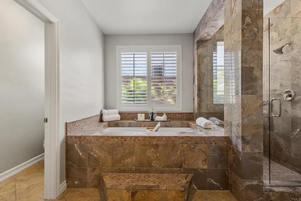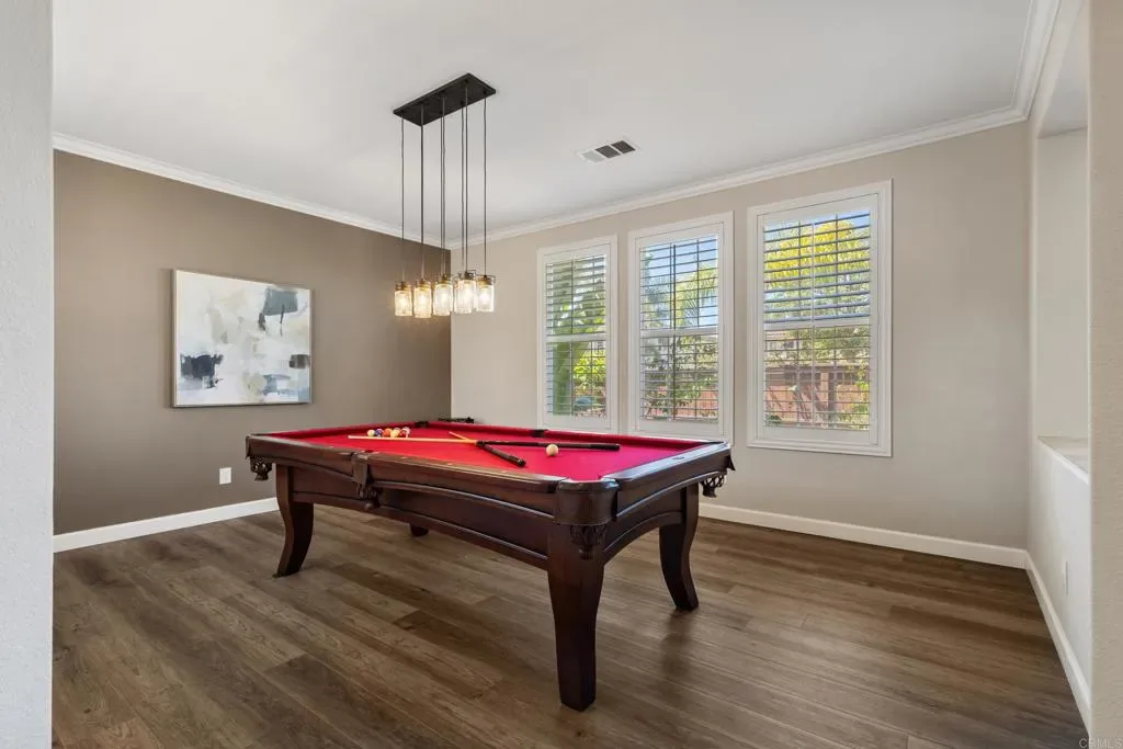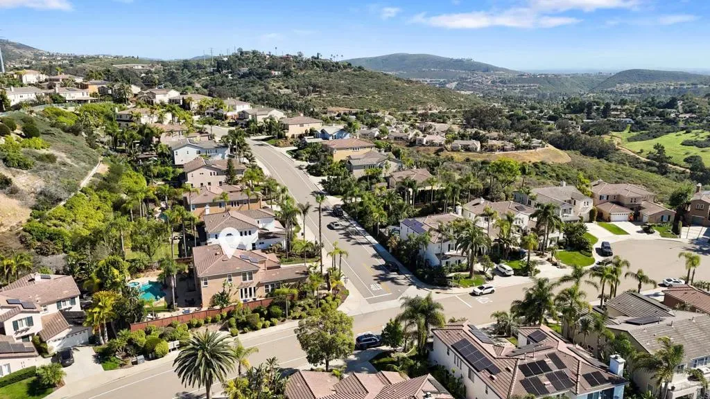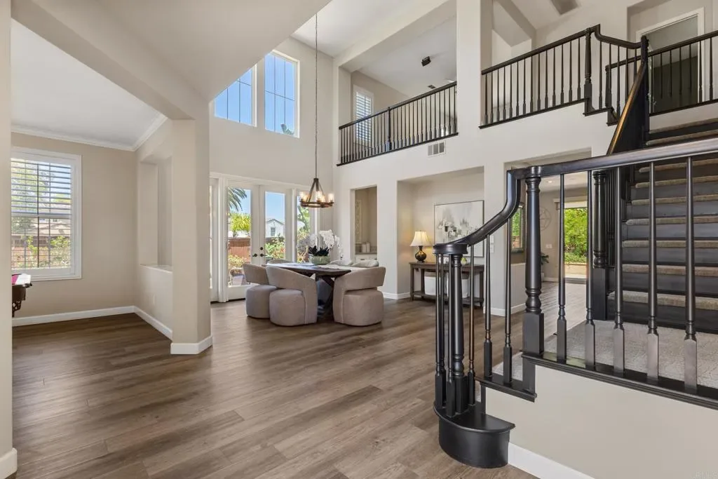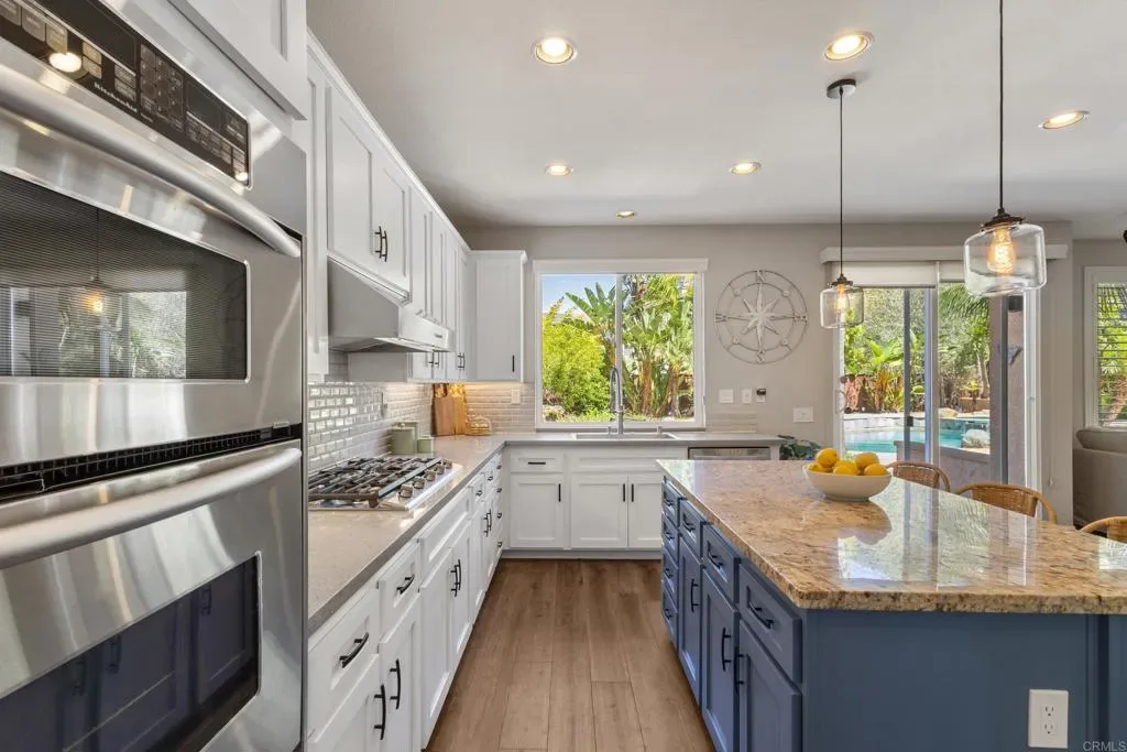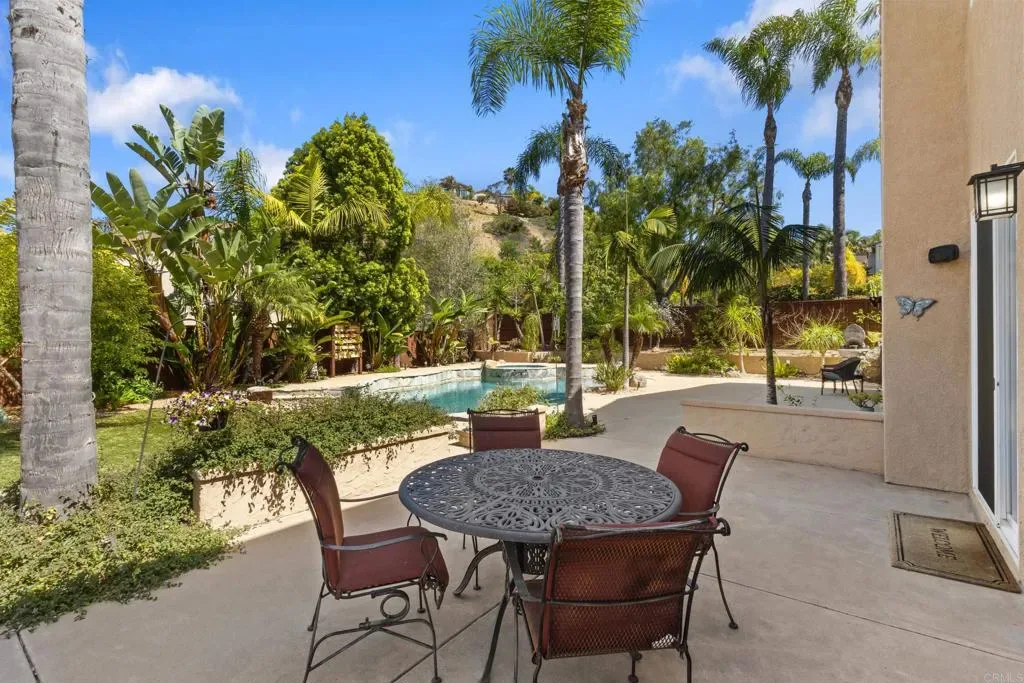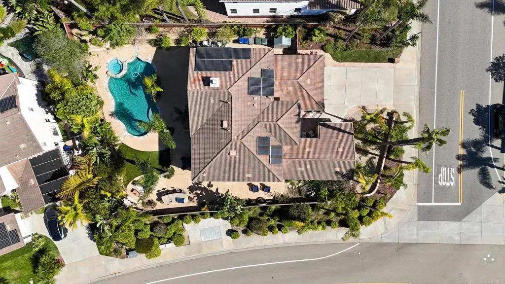 Welcome to 2198 Coast Ave, a sun-soaked haven nestled on .27 acres in the coveted community of Rancho Dorado, perfectly positioned at the border of San Marcos and Carlsbad. This stunning home sits on a spacious corner lot and offers the ultimate in resort-style living, complete with a sparkling salt water pool and spa, outdoor built-in BBQ/bar, cozy fireplace, and lush, mature landscaping. Step through the gated courtyard and into a home designed with thoughtful detail. The main floor features a luxurious primary suite with its own private backyard entrance, a spa-like bathroom with dual sinks, a separate vanity, a large soaking tub, a glass-enclosed shower, and a walk-in closet with a custom storage system. The heart of the home, the family room, boasts a fireplace with a striking marble tile inlay surround, and oversized windows that frame the serene backyard views. This space flows effortlessly into the renovated kitchen, which dazzles with sleek quartz countertops, stainless steel appliances, crisp white cabinetry, wine frig, custom backsplash, center island with granite countertop and seating, walk-in pantry, and butler’s pantry. The dining room, bathed in natural light with soaring two-story ceilings and French doors to private patio with serene fountain, seamlessly connects to the spacious living room, creating a perfect layout for entertaining. Upstairs, discover a sprawling loft that can serve as a den, playroom, media room, or anything else your heart desires. The secondary bedrooms are generously sized and connected by a Jack-and-Jill bathrooms, while a built-in office nook with custom desks and shelving adds a touch of convenience. The upstairs laundry room features a sink and extra storage to make everyday tasks a breeze. Additional highlights of this exceptional home include luxury vinyl plank flooring, plantation shutters, an owned solar system, a three-car garage, and so much more. The prestigious community of Rancho Dorado, offers access to miles of hiking and biking trails, just minutes from top-rated schools, scenic parks, shopping, and dining- all just minutes away. Don’t miss the opportunity to call 2198 Coast Ave home, where comfort, style, and the quintessential San Diego lifestyle come together in perfect harmony.
