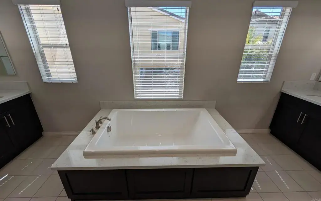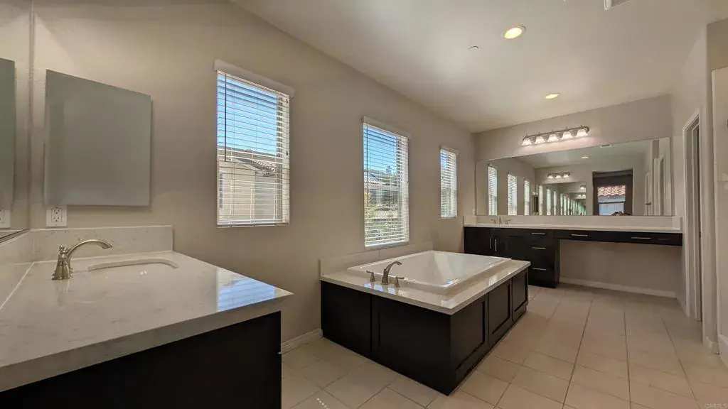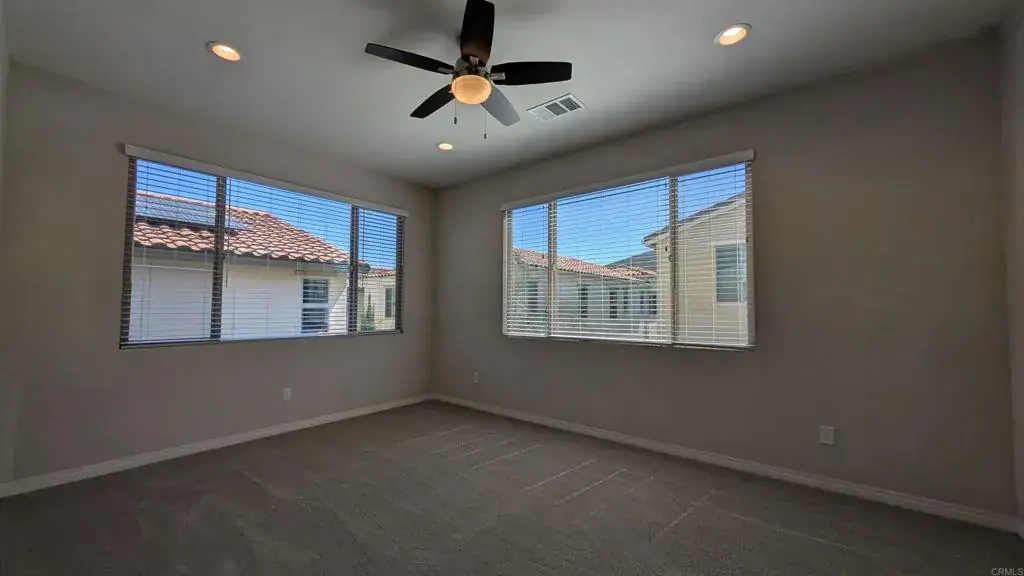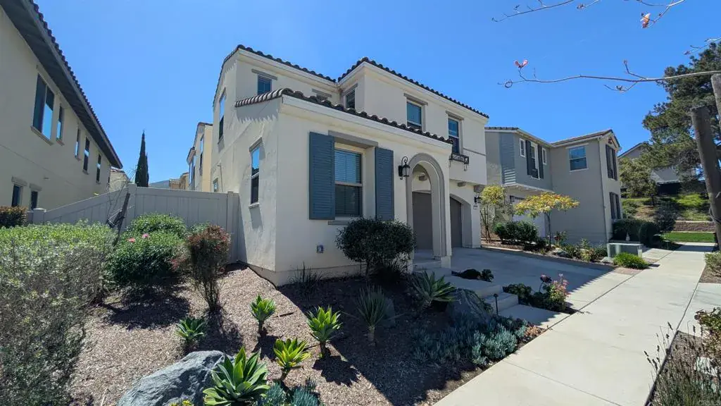 FOR LEASE is a stunning open concept 4 bedroom, 3 full bath home in the coveted Rancho Tesoro development of San Marcos. This home enters into a large open concept living area featuring an entertainers kitchen adjacent to an outdoor lounge area with included TV and fireplace. Downstairs you will also find a secluded bedroom, full bathroom, and 2 car garage with ample storage. On the upstairs you are greeted with a large common area perfect for lounging/media area/kids play area. Adjacent is a full bath with 2 sinks, a private laundry room, and storage closet. Highlighting the second story is a Primary Suite with connected 12×12 “California Room” perfect for an office, workout room, private lounge/media area, or art studio? And finally, a stunning primary bathroom with separate vanities, large soaking tub, walk in shower, and large walk in closet. This home has brand new carpet, high end appliances and fixtures, central A/C and heat, whole house fan, full Vivant security system (Tenant can opt to pay for monitoring) and very low maintenance artificial turf and landscaping throughout. Within walking distance to Discovery Lake, minutes to the 78 FWY and grocery stores/shopping, this home with lease fast!