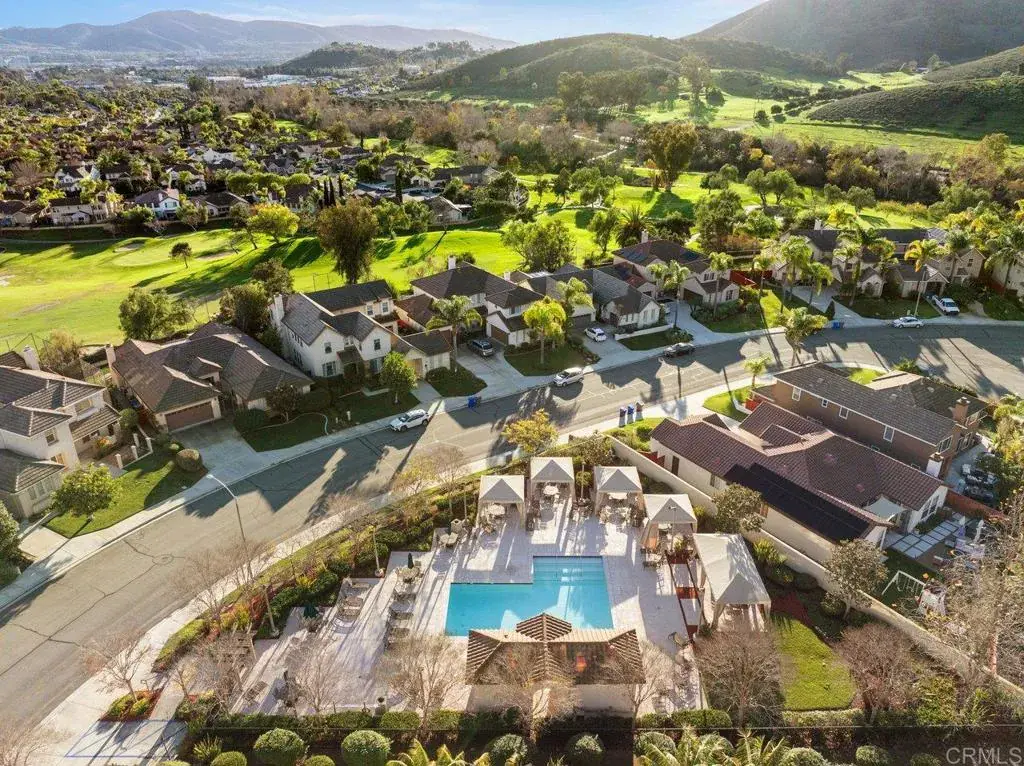 Entertaining offers from $1,448,900 – $1,498,880! Tucked away on a quiet cul-de-sac overlooking the 11th hole of the Twin Oaks Golf Course, this beautifully appointed two-story residence offers 3,247 square feet of thoughtfully designed living space on an expansive 12,237 sq-ft lot. Surrounded by rolling hills, scenic walking trails, and a nearby local winery, the setting delivers both comfort and lifestyle. The light-filled, generously sized kitchen—remodeled approximately three years ago—features gourmet finishes including an apron sink, walk-in pantry, abundant cabinetry, a large center island, wine refrigerator, and a welcoming eat-in area, making it ideal for everyday living and effortless entertaining. Upstairs, the primary suite is a true retreat with soaring vaulted ceilings, tranquil golf course views, a spacious custom walk-in closet, and a spa-inspired bath with dual vanities and a soaking tub. Additional highlights include a newly added loft-style media and office space with stunning golf course vistas, offering flexible use for work, relaxation, or entertaining. The main level showcases a spacious family room and living room, a striking spiral staircase, and a versatile bonus room currently used as a bedroom—perfect for guests or a private home office. Modern upgrades include owned solar, a new energy-efficient electric heat pump HVAC system installed in 2022, a water softener, and a newer tankless water heater, all adding comfort, efficiency, and long-term value. Additional features include a three-car garage, abundant natural light throughout, and a prime location on the same street as the community pool with cabanas. Enjoy a low HOA of just $75 per month. Located in the heart of San Marcos, residents enjoy access to multiple lakes, 44 parks spanning over 300 acres, and more than 176 miles of trails. Twin Oaks Valley is also near Walnut Grove Park, a beloved multi-use destination with equestrian paths, sports fields, and the San Marcos Historical Society Heritage Park. With its coveted golf course setting, modern upgrades, and inviting living spaces, this home offers a rare blend of comfort, functionality, and Southern California lifestyle.
