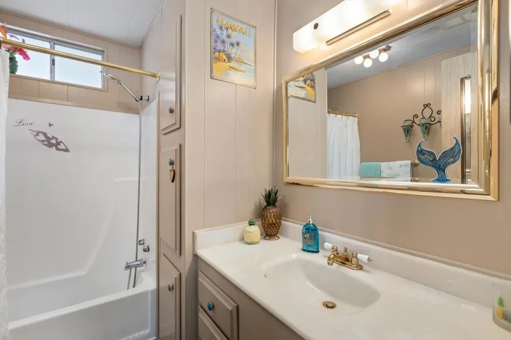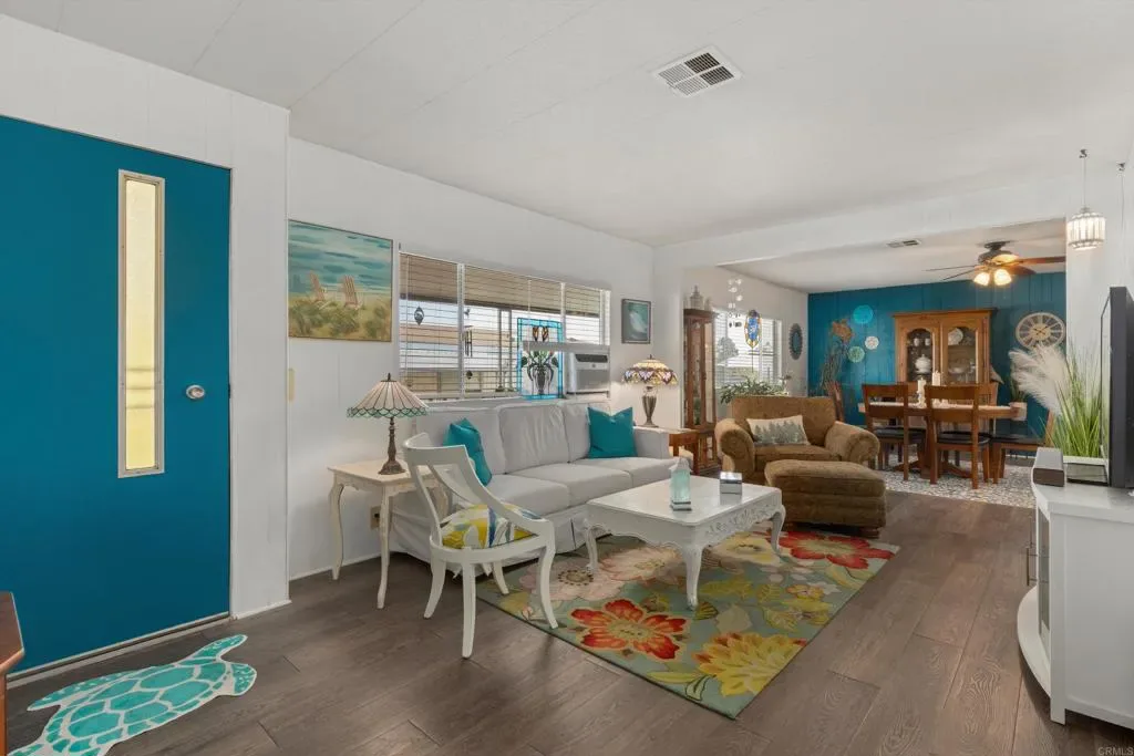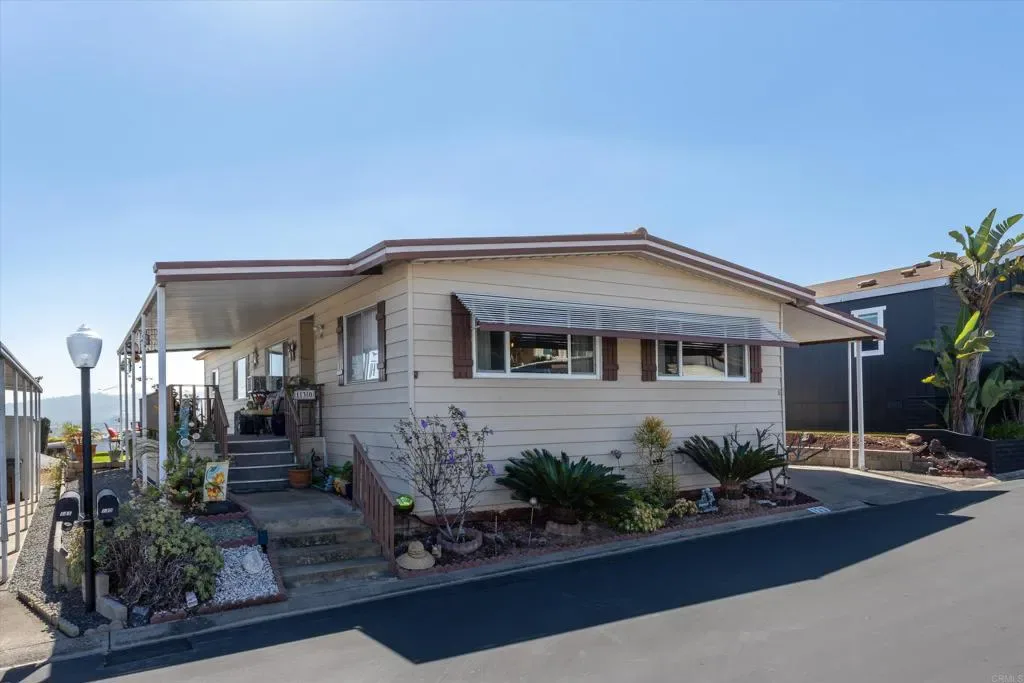 Updated VIEW Home with NO Property Taxes in Premier 55+ Resort Community! Enjoy elevated living in this beautifully maintained home located in a rent-controlled, resort-style community—plus the added benefit of HCD registration in lieu of traditional property taxes. This inviting residence features a desirable split-bedroom floor plan, offering privacy between the spacious primary suite and two guest bedrooms. The primary suite includes a walk-in closet for added comfort and convenience. Recent upgrades include a new stove, furnace, and thermostat, while many windows have been updated to vinyl dual pane for improved efficiency and natural light. Step outside to a low-maintenance yard with turf in the backyard and a drip irrigation system—perfect for easy outdoor enjoyment. Located in the highly sought-after Rancho Vallecitos community, residents enjoy access to exceptional amenities including a clubhouse, pool & spa, fitness center, library, billiards room, game and craft rooms, putting green, dog park, and more. A vibrant social calendar and scenic surroundings complete the resort lifestyle. Space rent is $740 and subject to city rent control.