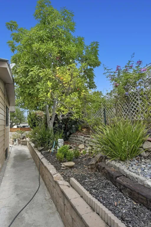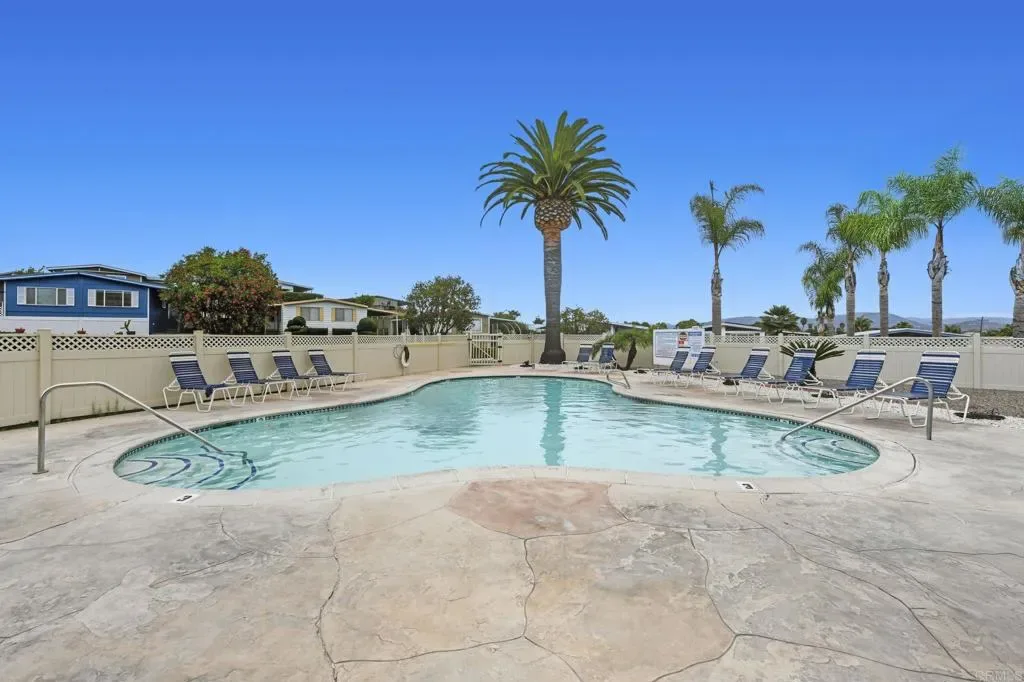 Enjoy a peek-a-boo ocean view sunset from your large hard wood porch! This beautiful and spacious 2 bedroom 2 bath located on a gently sloping corner lot surrounded by gardens, porches, patios, and views! Uniquely private and useable lot is completely landscaped front, back, and side yards. Low water succulents and plumeria in front, lime, lemon, and avocado in back and delicious fig on the side yard. The large home has been wonderfully updated with space for formal living area, family area, and a den/office. The large open kitchen with views to the west is perfect for the chef of the house. Enjoy a large master bedroom with over sized closet and slider to a private patio. Get ready for fun community activities or just unwind in your remodeled bathroom with quartz counters, lots of cabinet space and a claw foot tub. Large lot is one of the most spacious in the Community and adjacent to 3 guest parking spaces and shady tree on the West side of home. Walking distance to putting green, lawn bowling, and picnic area. The community has a pickleball, pool, tennis courts, club house and community events! Walk to shopping, bank and restaurants. Located just a short drive from Carlsbad, Encinitas, Vista, or Escondido, this freshly extensively renovated home is Move-In Ready! No property tax. Space fee is $685 per month and includes water/trash /sewer