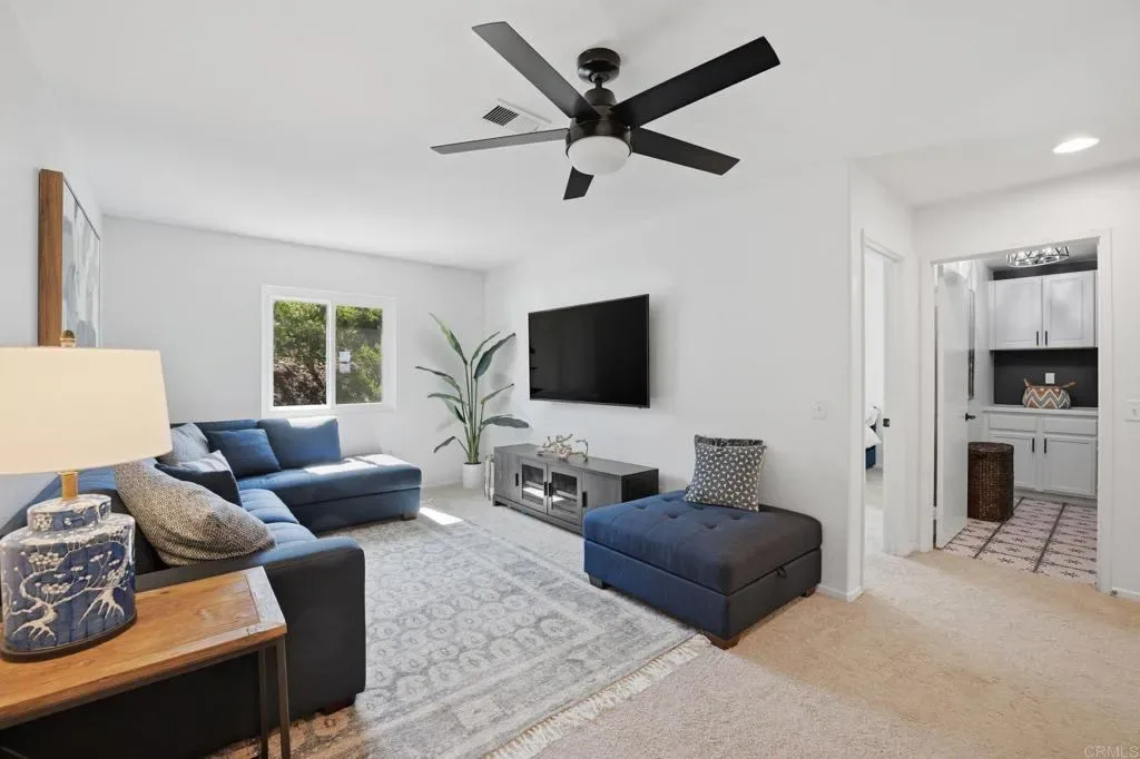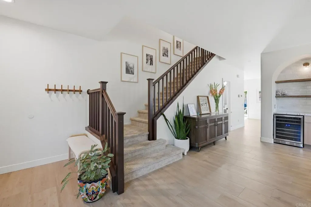Welcome to 771 Via Barquero, a beautifully updated and meticulously maintained home located in the highly desirable Santa Fe Hills community of San Marcos. This residence offers a perfect blend of modern upgrades and comfortable living, all in an ideal North County location. Step inside to discover a bright, airy interior highlighted by new Milgard windows that allow for abundant natural light. The downstairs layout features elegant porcelain wood-look flooring throughout, creating a warm and inviting atmosphere. The living spaces have been thoughtfully upgraded, complete with a custom fireplace and a stylish wine bar—ideal for relaxing evenings or entertaining guests. Upstairs, spacious bedrooms provide a peaceful retreat, while the primary suite boasts a fully renovated bathroom adorned with modern finishes, creating a spa-like ambiance. The upstairs guest bathroom has also been tastefully remodeled, adding both comfort and value. For your convenience, the washer and dryer are located upstairs. Additionally, the roomy loft can easily be converted into a fourth bedroom if needed. The backyard is a thoughtfully designed, comfortable space that serves as a private retreat. It includes a Bull BBQ island, a Cal Spas hot tub, low-maintenance turf, and oversized Belgard pavers—perfect for hosting gatherings or unwinding in your own sanctuary. With no neighbors behind the property, you can enjoy the tranquility of backing up to miles of maintained walking trails. Additional upgrades include fresh exterior paint, a brand-new HVAC system, ample room for RV parking, and enhanced curb appeal, making this home as impressive on the outside as it is on the inside. Conveniently located near top-rated schools, parks, shopping, dining, and major freeways, this move-in-ready home offers the perfect combination of upgraded living and everyday convenience. There is no HOA, making it an even more attractive option. Whether you’re looking to settle down or step up, 771 Via Barquero is an outstanding opportunity you won’t want to miss.
