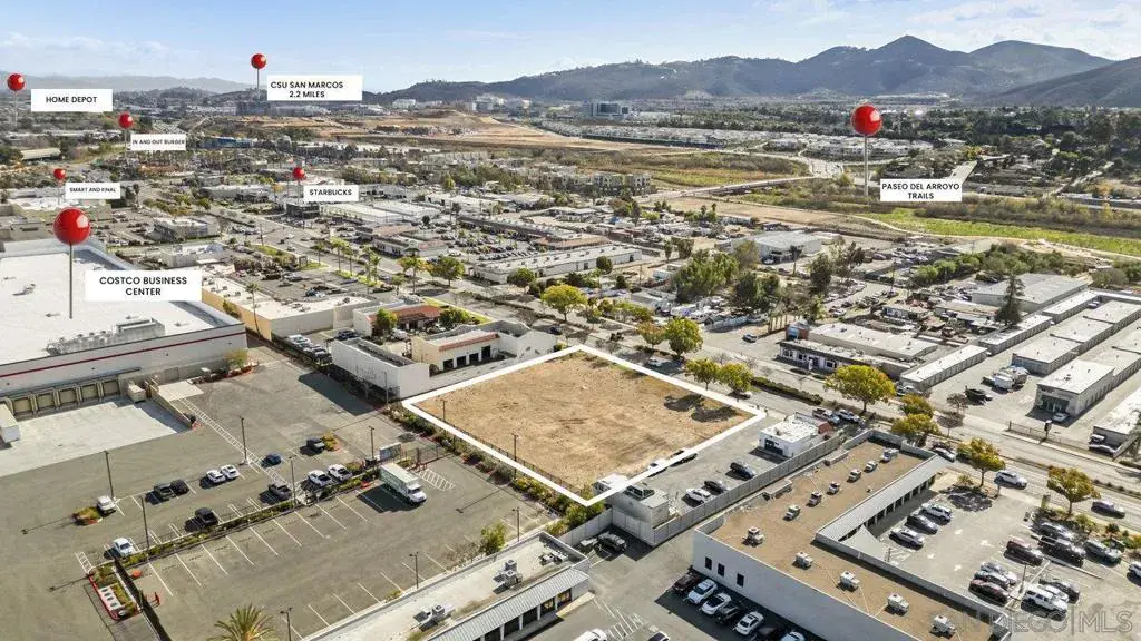 Vacant land with mixed used, 4 story, redevelopment opportunity in the heart of San Marcos. Proposed plans of roughly 3,700 sq ft of commercial space and a mix of 27 units consisting of 3, 2 and 1 bedrooms of condominium ownership. Property will be delivered with entitlement. Close proximity to CSUSM (2.2 miles), Palomar College (1.6 miles), San Marcos Civic Center (1.8 miles), Lake San Marcos (1.8 miles), Palomar Hospital (5 miles) and surrounded by multiple health clinics. Property consists of 2 APN’s (219-331-34-00 & 219-331-35-00). Total sq ft of lot is 38,282 (0.88 acres).