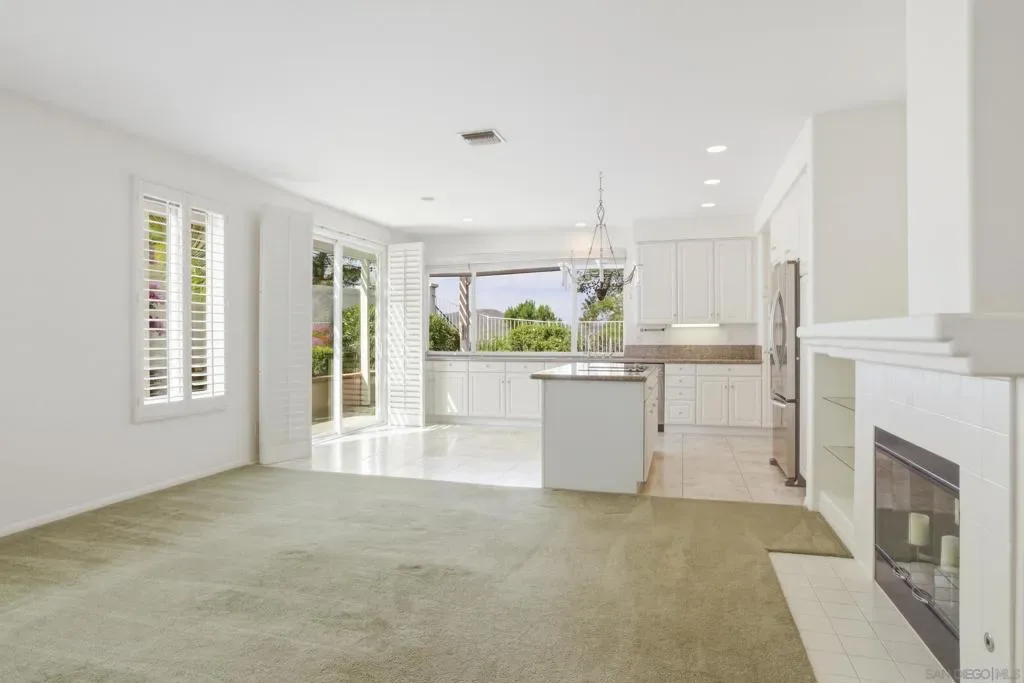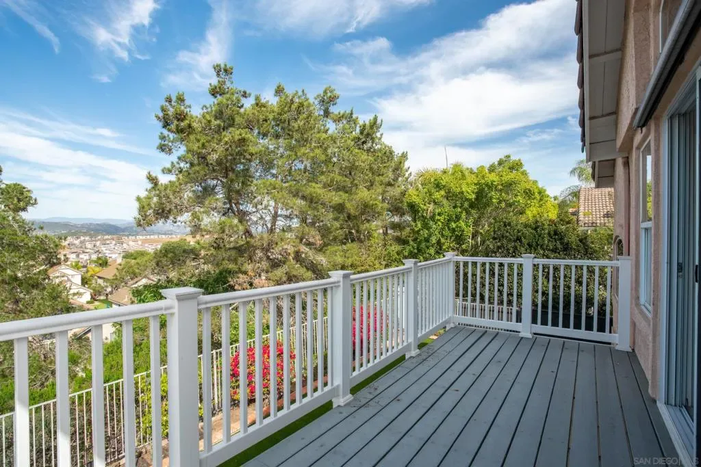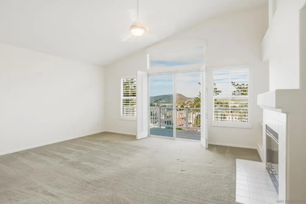 Welcome to 881 Windridge Circle in Chancellors Crest within Discovery Hills—one of the area’s most exclusive enclaves—where light, space, and lifestyle come together in the heart of San Marcos’ beloved Discovery Lake community. The home’s charming curb appeal and low-maintenance hardscaped front yard set the tone. Step inside to soaring ceilings, abundant natural light throughout, and an open floorplan that feels expansive and inviting. Large windows and crisp white shutters create a bright, timeless aesthetic. The open kitchen area flows seamlessly to the living space and backyard, creating ideal indoor-outdoor living. The main living area features a fireplace, adding warmth and charm. This 4-bedroom, 3-bath home offers approximately 2,349 square feet of well-designed living space, including a highly desirable main-level bedroom or office and full bath. The kitchen is functional and welcoming, featuring a walk-in pantry and breakfast nook. Upstairs, the spacious primary suite is a true retreat, featuring an expansive private deck with beautiful sunset, mountain, and hill views, along with its own fireplace for added comfort. The ensuite bath offers a soaking tub, walk-in shower, dual vanities, and ample space to unwind. Two additional upstairs guest bedrooms complete the second level. Step outside to a private backyard featuring low-maintenance turf, clean, usable, and ideal for entertaining or everyday outdoor living!