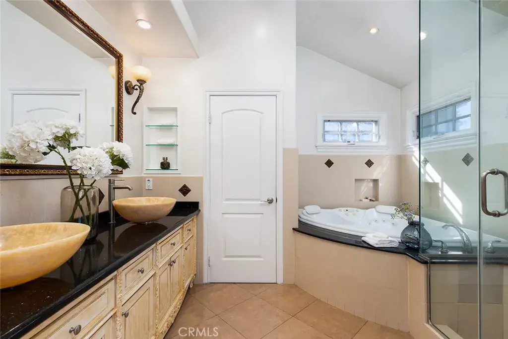 PRICE ADJUSTMENT! Beautiful, south-facing Cape Cod–style home located in the highly desirable city of San Marino. This two-story residence features an open floor plan with high vaulted ceilings, recessed lighting, crown molding, and porcelain tile flooring throughout. Rebuilt in 2005 (excluding the foundation and select walls), the home has been exceptionally well maintained over the years. Upon entering, you are greeted by a charming decorative fireplace in the living room and an elegant staircase with wrought-iron railings and mahogany wood, situated just off the dining room. The modern kitchen includes Italian Scavolini tempered-glass cabinetry, a newer LG built-in refrigerator, stainless steel appliances, Caesarstone countertops, and a walk-in pantry. The adjacent family room offers a wet bar and French doors that open to the patio and backyard, creating a seamless indoor-outdoor flow for entertaining. The first floor offers two bedrooms, a den/optional fifth bedroom, and three bathrooms. The primary suite and an additional bedroom suite are located on the second floor. The spacious primary bedroom includes a wet bar and an oversized walk-in closet, while the primary bathroom features a jetted spa tub, separate shower, double sinks, and granite countertops. The expansive backyard is beautifully landscaped with a lush lawn, more than twenty fruit trees—including pear, apple, orange, lemon, guava, plum, fig, cherry, avocado, passion fruit, and grapes—and a variety of flowers that create a true garden atmosphere. A large, securely fenced swimming pool and gazebo provide an ideal setting for outdoor gatherings. The pool was retiled and replastered in 2022, with a new dual variable-speed pump installed in 2025. Additional features include a detached two-car garage, a finished basement offering ample storage, and a home security system. Mature privacy hedges and two secure iron gates, including a driveway gate, surround the front yard for enhanced privacy and security—creating a private oasis perfect for comfortable living and entertaining.