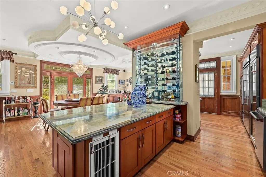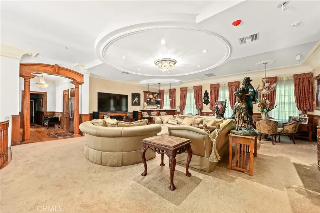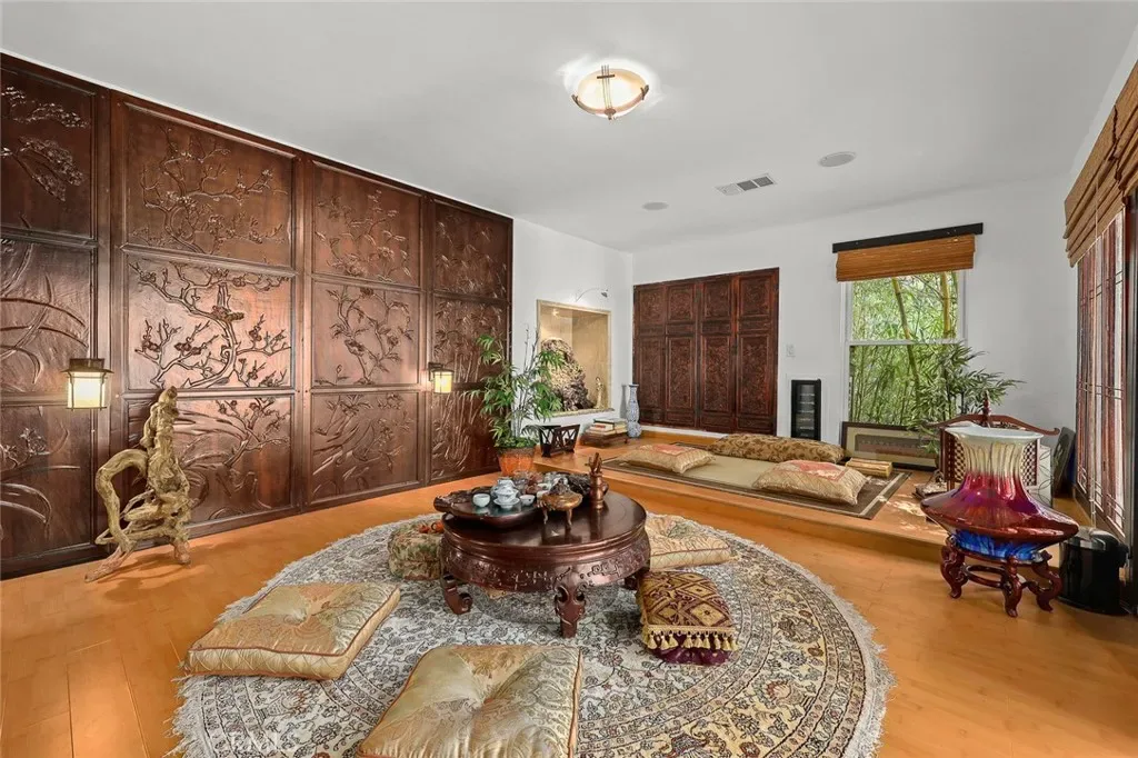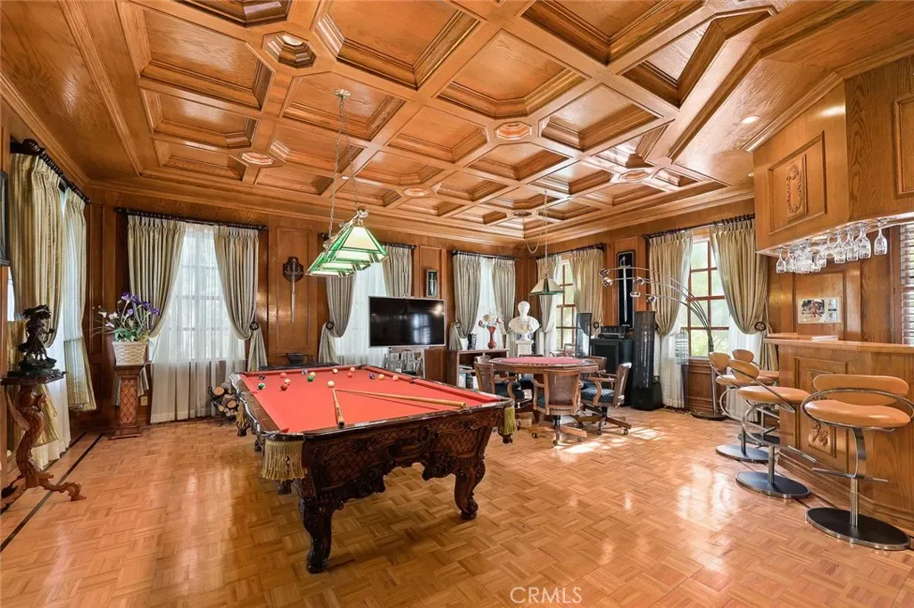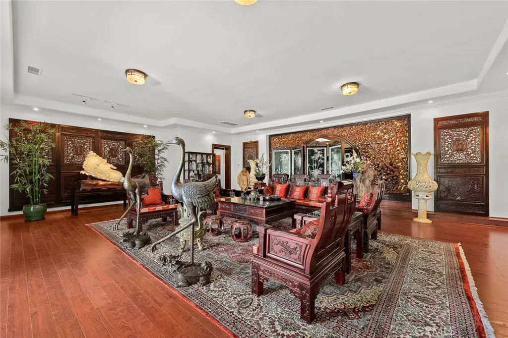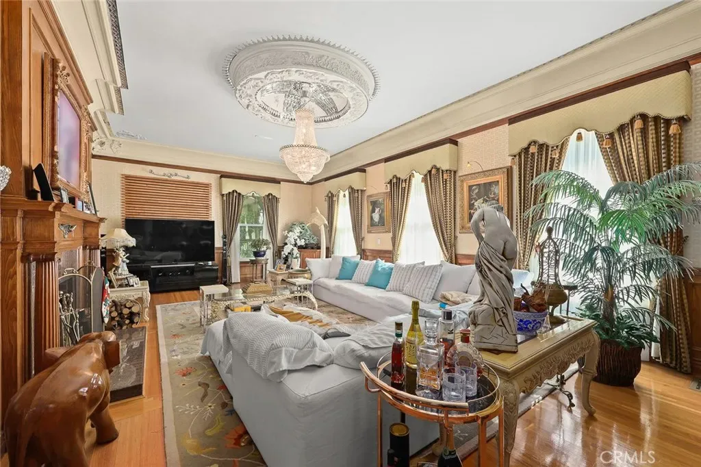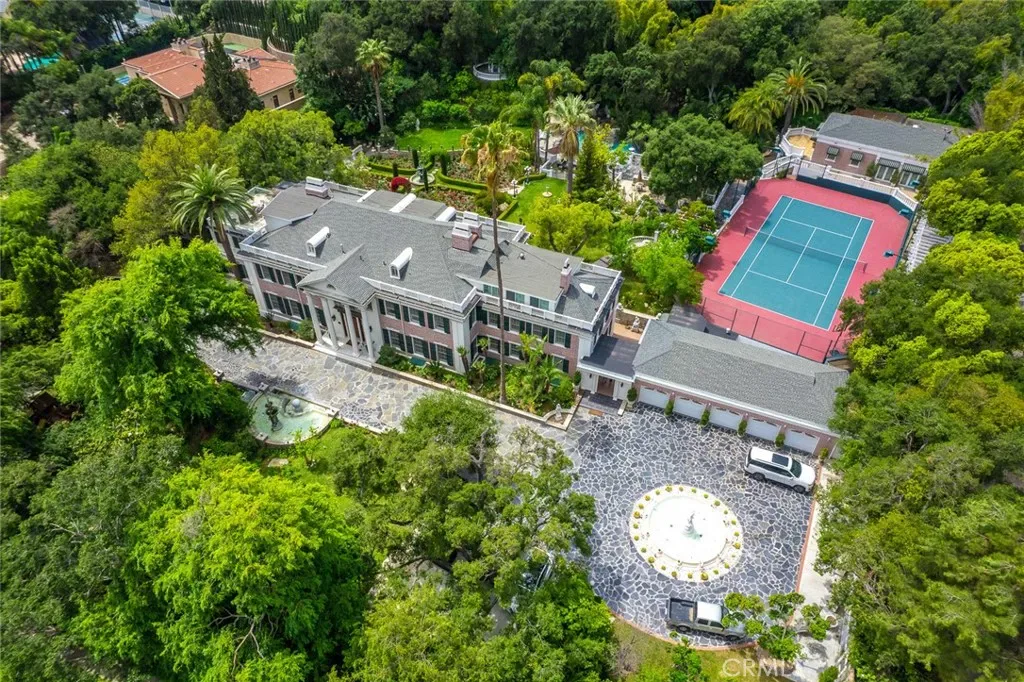 Located in the prestigious estate area of San Marino, this distinguished Georgian Colonial residence offers a rare blend of timeless architecture, refined luxury, and notable historical provenance. Originally constructed in 1918, with historical accounts attributing its origins to Henry E. Huntington, founder of the Huntington Library and Huntington Hospital, the property encompasses approximately 10,458 square feet and has been meticulously maintained, preserving its architectural integrity while incorporating modern amenities. Sited on an expansive 2.29-acre parcel, the property offers exceptional land value and usability, complemented by a long, private driveway with ample on-site parking capable of accommodating large gatherings with ease. Set behind wrought-iron gates and mature landscaping, the residence enjoys exceptional privacy and a strong sense of arrival. The grand interior features soaring 12-foot ceilings, elegant chandeliers, rich wood detailing, and graciously scaled formal spaces, with an elevator and sweeping staircases providing access to all levels. Designed for both formal entertaining and comfortable daily living, the residence offers a thoughtfully balanced floor plan. The primary suite serves as a private retreat with a jacuzzi tub, walk-in shower, expansive walk-in closet, and a separate sitting area, while six additional ensuite bedrooms provide ample comfort and privacy. Formal living areas include a grand dining room, stately library, conference room, and a private cinema, complemented by a fitness room, massage and barber room, multiple wet bars, and an extensive wine cellar. The grounds are designed to feel serene and impressive, featuring multiple balconies and terraces ideal for entertaining, along with resort-style amenities including a pool with waterfall and lighting, tennis court, cabanas, koi pond, and a Japanese-inspired tea house. Garden pathways, a gazebo, and secluded seating areas further enhance the landscaped grounds. Additional improvements include a six-car garage, maid’s quarters with two ensuite bedrooms, and a spacious two-story guest house. Fireplaces throughout the home and zoned central air conditioning provide year-round comfort. Located within the award-winning San Marino School District, this exceptional estate presents a rare opportunity to acquire a property of this scale, land value, privacy, and historical character in one of Southern California’s most desirable communities.
