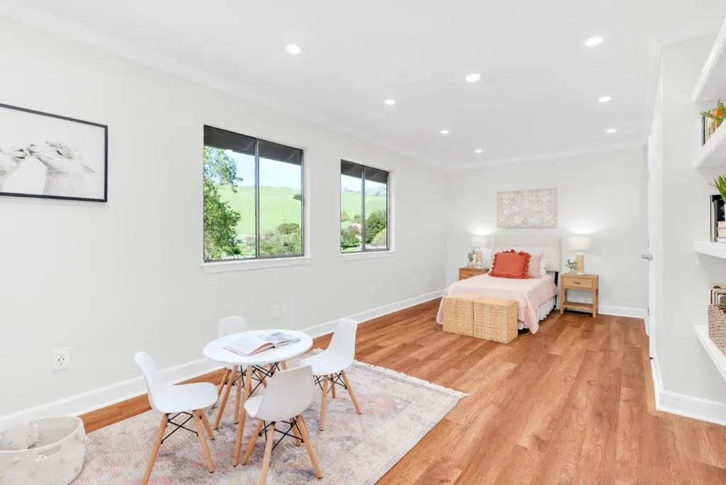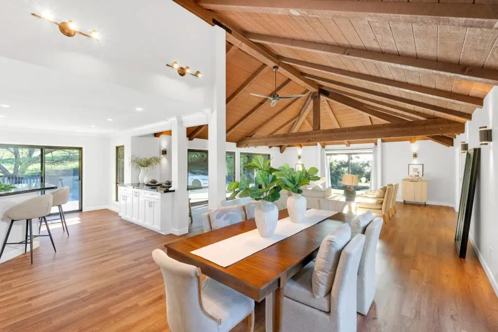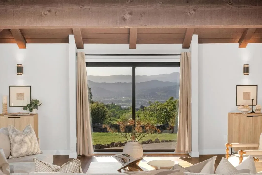 Perfectly positioned on 10 breathtaking acres in the highly sought-after Rancho Robles gated community, this remarkable property offers an extraordinary blend of privacy and natural beauty. The 3,488 sq/ft home is complemented by a 1,100 Sq/ft finished walkout basement, perfect for a gym, theater, studio, or workshop (not counted in the total square footage). Surrounded by open space with sweeping mountain views, the beautifully updated home captures stunning scenery in every direction. Grand vaulted open-beam ceilings and expansive picture windows fill the home with natural light. The Chef’s Kitchen includes custom white shaker cabinetry, stainless steel appliances, and a spacious two-tiered island ideal for entertaining. The expansive primary suite enjoys serene hill views and a spa-inspired bathroom with a frameless shower and dual shower heads. A thoughtfully designed layout features two separate wings, ideal for guests or multigenerational living, with a second living area, full kitchen, two bedrooms, and a remodeled bathroom. A private hiking trail winds through the property, creating a rare connection to the surrounding landscape. Located near open space and Harvey Bear Ranch County Park, Rancho Robles offers a peaceful lifestyle defined by privacy and awe-inspiring views.