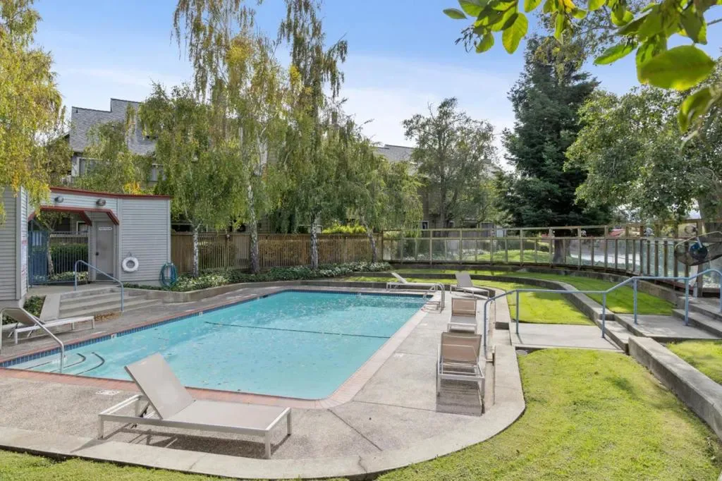 Experience serene waterfront living in the sought-after Harbortown community of San Mateo. This beautifully updated corner unit with 3 bedrooms, 2 full bathrooms and a laundry room showcases vaulted ceilings, wide-plank engineered floors, and expansive windows framing serene lagoon views. The open-concept living and dining area centers around a welcoming fireplace and flows seamlessly to a private balcony ideal for relaxing or entertaining. The refreshed kitchen features quartz countertops, stainless steel appliances, and ample cabinetry. The spacious primary suite includes dual closets and a tastefully remodeled en-suite bath, while two additional bedrooms offer flexibility for guests or a home office. Don’t miss the single-car garage. Residents enjoy resort-style amenities including a sparkling pool, spa, tennis and pickleball courts, a community garden, and scenic walking paths. Conveniently located near the Bay Trail, parks, shopping, dining, and major commuter routes this home blends tranquility with effortless access to the best of the Peninsula. HOA: $856/mo