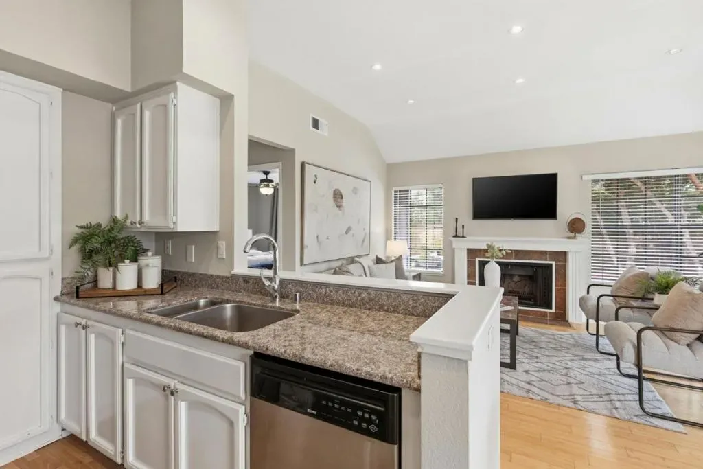 Bright and freshly painted one bed/one bath condo that lives like a townhome offers high ceilings, in-unit laundry, dining area, a bright living room with a fireplace, spacious bedroom with a large closet, and a bathroom with a dual vanity. This home also offers a private one car garage and is conveniently located close to major commute routes, shopping and dining.