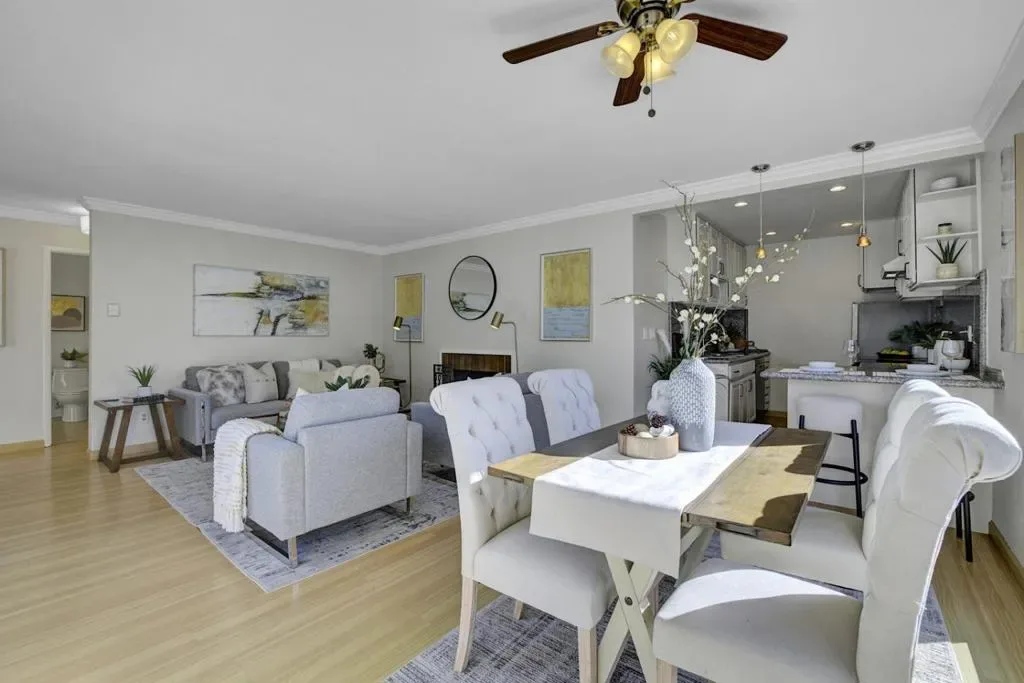 Nestled in the desirable The Gardens gated community, this beautifully updated top-level 2-bedroom, 1 bath condo offers the perfect blend of charm, comfort, and Peninsula convenience. Tucked away at the back of the complex, the home enjoys a peaceful and private setting. The inviting open living area features a cozy fireplace and luxury laminate flooring throughout, seamlessly connecting to the dining area ideal for both everyday living and entertaining. The updated kitchen offers ample counter space, freshly painted cabinetry, and new stainless steel appliances, including a refrigerator, stove, and hood.The home includes two spacious bedrooms, an updated bathroom, and a freshly painted interior. A deeded one-car covered garage space, plus an additional unassigned parking space, completes this move-in-ready residence. Resort-style amenities including an outdoor pool, indoor pool, and a fully equipped fitness center. Ideally located near top-rated schools, vibrant San Mateo amenities, Hillsdale Shopping Center, Silicon Valley tech hubs, and with convenient access to Highways 92, 101, and 280, this home offers peaceful living with exceptional accessibility.