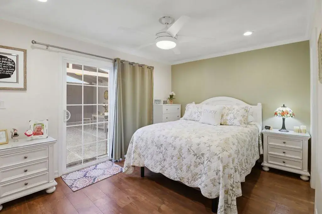 Welcome to this beautifully maintained 3-bedroom, 2-bath home plus a den (that can easily serve as a fourth bedroom), updated and owned by the same family for more than 40 years. Nestled on a cul-de-sac, this home offers comfort, charm, and exceptional indoor-outdoor living. The entry leads to a spacious living room designed for both relaxation and entertaining, featuring a stunning stone fireplace, custom built-in cabinetry, and a striking wall of wood shiplap that adds warmth and character. The beautifully updated kitchen showcases granite countertops, ample cabinets, stainless steel appliances, a charming garden window, and a large eat-in dining area with sliders leading directly to the backyard, perfect for everyday living. The main level offers a desirable layout with a primary bedroom suite complete with built-in cabinetry and direct backyard access. Also on the main floor is a den or optional fourth bedroom with slider access to the yard, along with a second full bathroom. Upstairs, you’ll find two additional bedrooms, both with generous closet space, providing comfort and privacy. The backyard features a sparkling pool, entertaining areas, and an outdoor built-in grill. Additional highlights include; a solar system with 2 back up batteries, and 2 tuff sheds. A Must See!