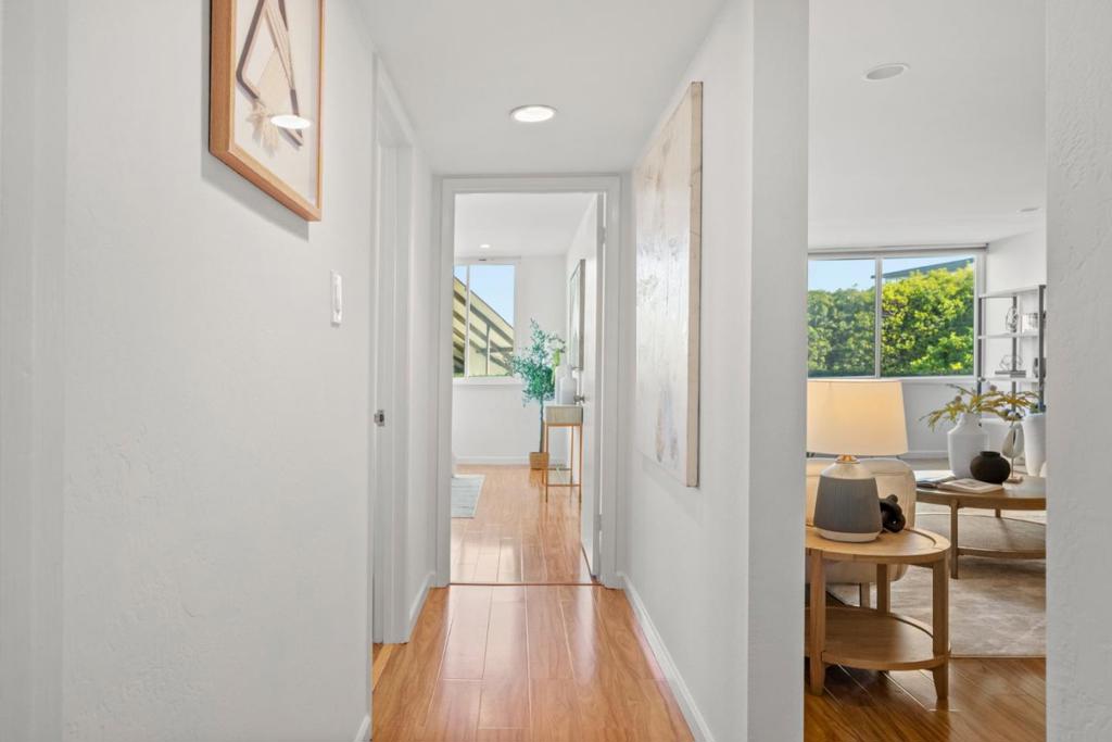 Just one-half mile from downtown San Mateo and one mile from Burlingame Avenue, this rarely available first-floor condominium has 3 bedrooms and 2 baths in a signature mid-century building. Ideal opportunity for downsizing without giving up space or location. Towering porte cochere entry, secure access to an atrium-style lobby, or from the gated underground garage. The updated and thoughtfully arranged floor plan has abundant natural light with expansive tree and clubhouse view windows. Recent updates include gleaming laminate wood floors, refreshed kitchen and baths, updated lighting, and a soft neutral palette. Bedrooms are privately positioned, including a primary suite with extensive closet space and a beautifully finished bath, plus there are two bedrooms and a bath in a separate wing. Same-floor coin laundry with storage unit, and a mid-century clubhouse with pool, spa, sauna, and fitness center. Midway between San Francisco and Silicon Valley and just minutes to SFO.