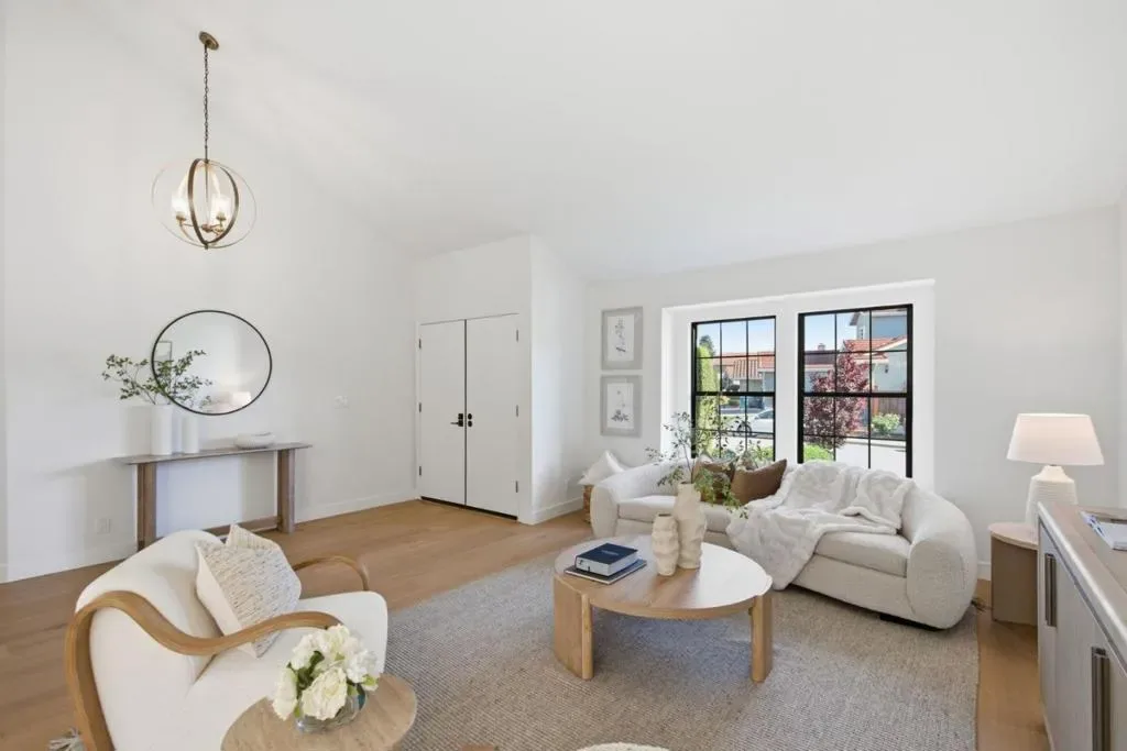 Welcome to this beautifully remodeled traditional home in the Woodbridge Park neighborhood of San Mateo, zoned to top-rated Belmont schools. Flooded with natural light, this rarely available 2-story residence offers a versatile floor plan. Upstairs, you will find a primary suite featuring high ceilings & a seating area along with 2 additional bedrooms each with their own walk-in closet. A bedroom & a full bath on the main level provide flexibility for guests or a home office. A grand entry opens to an elegant living room with vaulted ceilings & a formal dining area, creating an inviting space for everyday living. At the heart of the home, you will find an open layout where a fully remodeled kitchen flows effortlessly into a sunny eating area & an inviting family room. Double sliding doors open to the flat backyard perfect for indoor-outdoor living & entertaining. The stunning kitchen showcases white cabinetry, quartz counters, SS appliances, tile backsplash & a center island. Other highlights include newly installed white oak engineered hardwood floors & carpet, fresh paint, chic light fixtures, recessed lighting, laundry room & 2 car garage. Ideally located near parks, Hillsdale Mall, freeways, Caltrain & SFO. First time on the market, this is the one you have been waiting for!