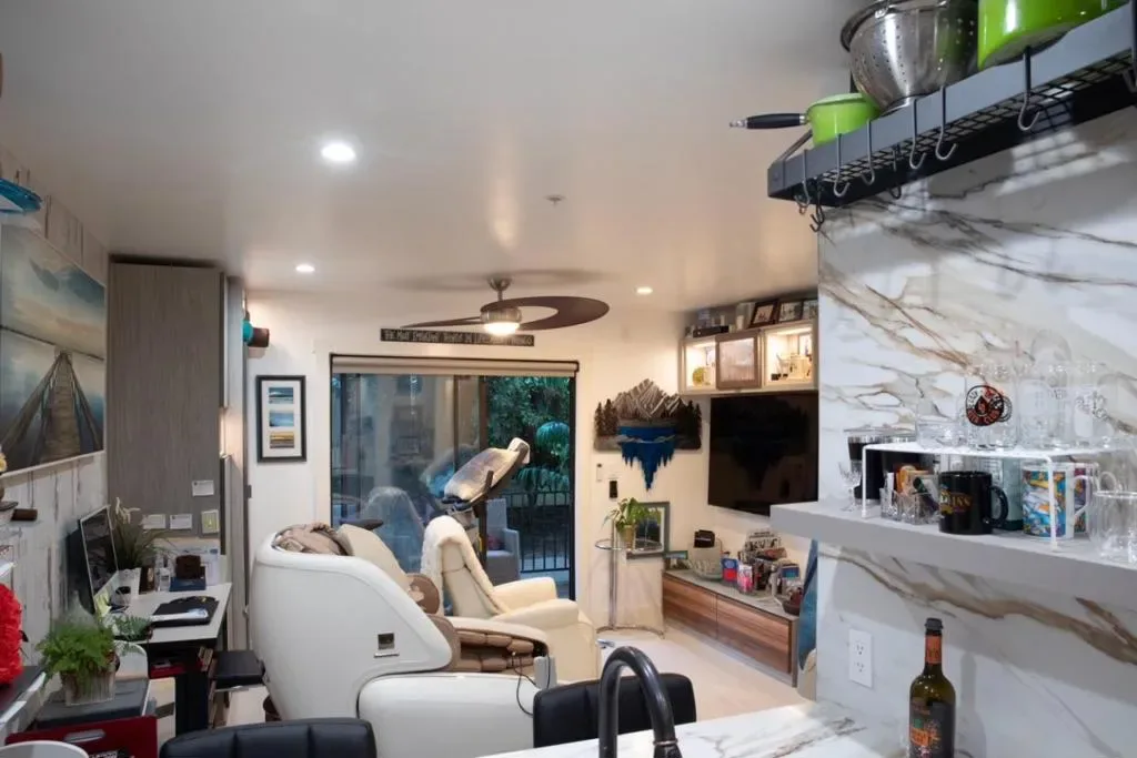 Charming Garden-Level Condo in the Heart of Downtown San Mateo. Location truly is everything and this delightful ground-floor condo delivers. Nestled in the vibrant heart of San Mateo, you’re just a short stroll to an incredible variety of restaurants, movie theaters, Caltrain, parks, gyms, banks, medical services, and the local library. This thoughtfully designed 505 sq. ft. home lives large thanks to custom California Closets systems, efficient layout, and tailored lighting throughout. The fully customized chef’s kitchen is standout, featuring built-in Bosch appliances, a large dual-motor refrigerator, induction cooktop with timers, hanging pot rack, porcelain countertops, and beautifully crafted cabinetry. Additional Highlights Include: Heated floors and towel rack; Spa-inspired tiled bathroom with bidet; Two ceiling fans and air conditioning; Two LED fireplaces for ambiance and comfort; One secure parking space in the garage; Storage closet just down the hallway. Enjoy peaceful garden views from this ground-floor unit, along with moderate HOA dues that includes water.