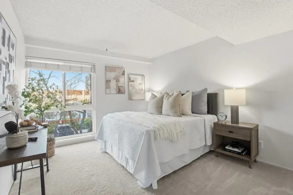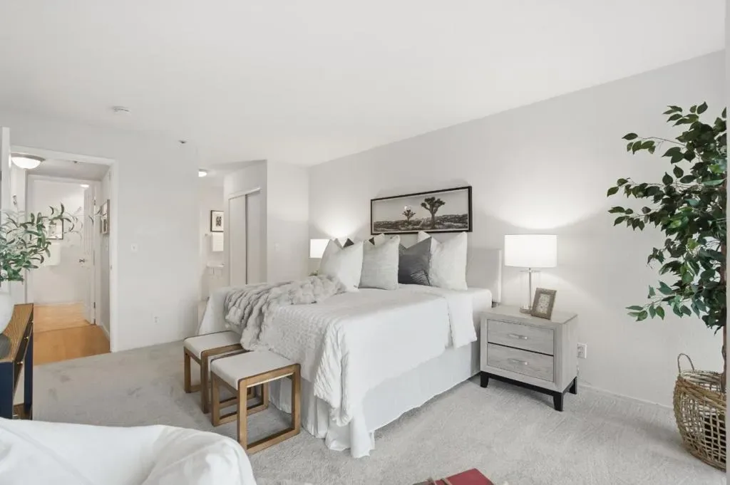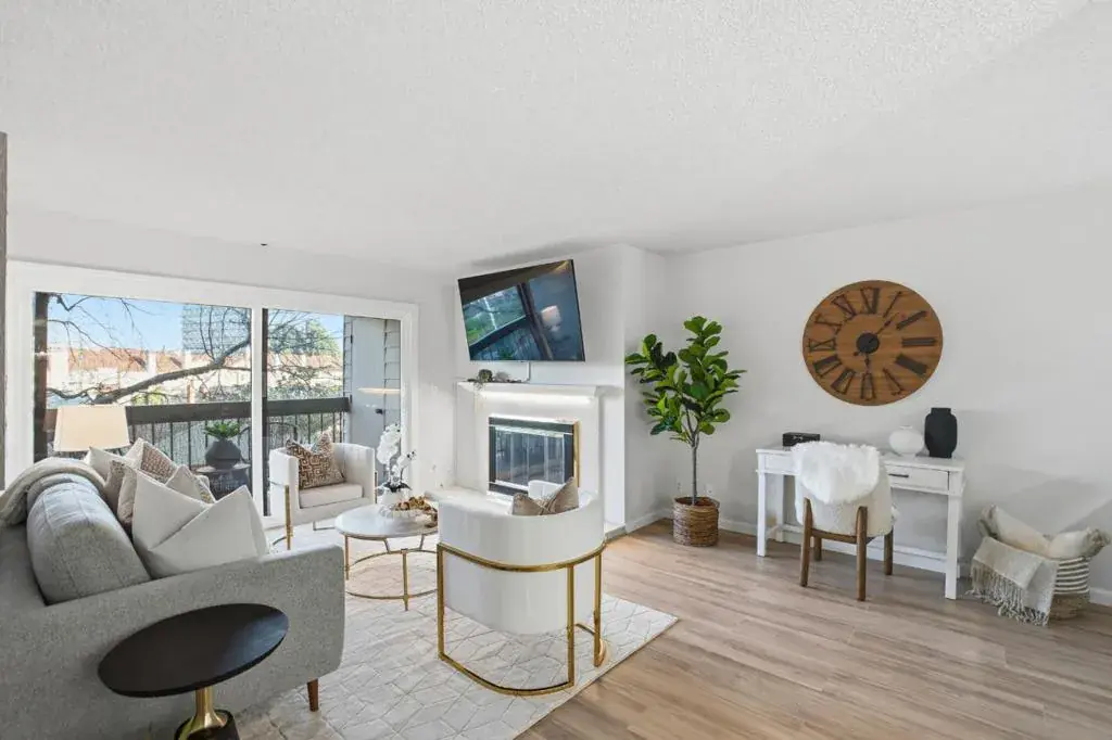 Welcome to this beautifully refreshed 2 bedroom, 2 bathroom condo offering comfortable, low maintenance living in a desirable San Mateo community of Plaza West. Unit 203 is an private end-unit. Spanning approximately 1,213 square feet, this move in ready home has been thoughtfully updated throughout with brand new carpet, new luxury vinyl plank flooring, and freshly repainted cabinetry. The updated kitchen features new countertops, a stylish backsplash, and recessed lighting, creating a bright and functional space that opens seamlessly to the dining and living areas, ideal for both everyday living and entertaining. The living room is anchored by a cozy fireplace and opens to a private patio, perfect for relaxing or enjoying indoor outdoor living. Both bathrooms have been refreshed with new countertops, modern hardware, and sleek glass shower doors, giving the home a clean, contemporary feel. Additional conveniences include an in unit laundry area and one secured parking space. Residents enjoy resort style amenities including a pool, spa, sauna, gym, tennis court, and recreation room. Ideally located near Hillsdale shopping and dining, Caltrain, and with easy access to Highways 92, 101, and 280, this home offers an exceptional blend of comfort, updates, and convenience.