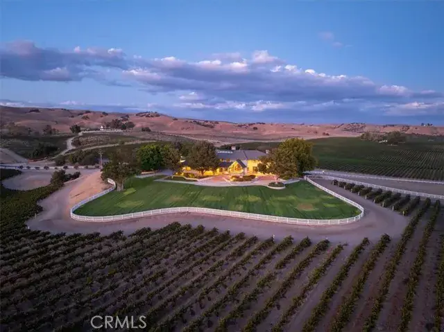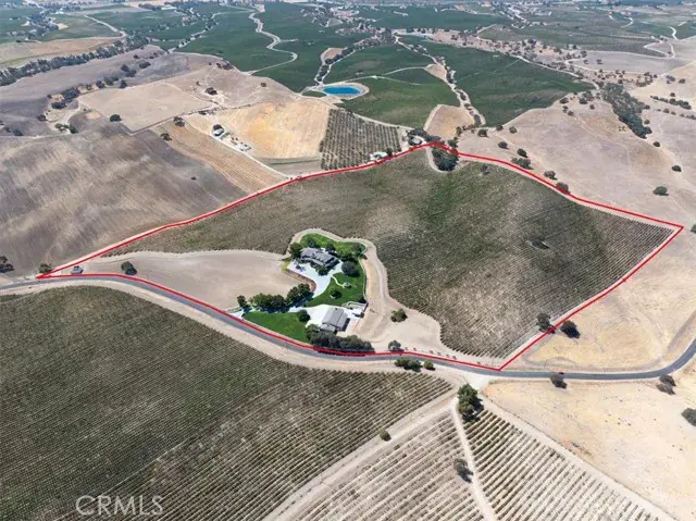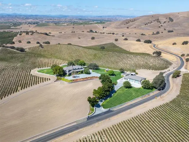 Welcome to a truly one-of-a-kind residence, where vision and craftsmanship come together in perfect harmony. Thoughtfully designed and meticulously built by the seller, this extraordinary estate is as much a masterpiece as it is a home. Located in the desirable Pleasant Valley area, it offers the serenity you’re looking for amidst expansive neighboring vineyards, wineries, orchards, and grazing land. From the moment you arrive at the gated entrance and wind your way up the tree-lined concrete driveway, you’ll be struck by a sense of timeless elegance. Set on 52± acres with sprawling lawns, 360-degree views, and a beautifully maintained 40-acre vineyard of premium Merlot, the property offers both grandeur and agricultural distinction. The 6,800± sq. ft. home is a showcase of design and detail. At its heart, the living, dining, kitchen, and family rooms soar with two-story ceilings and clerestory windows that bathe the interiors in natural light while framing sweeping vineyard and countryside views. Entertaining is effortless with a sunken formal living room, an open family room complete with wet bar, a stunning gourmet island kitchen with expansive walk-in pantry and multiple dining areas, and extensive concrete patios with outdoor BBQ island. Two dramatic fireplaces anchor the main living spaces, while private retreats abound with 5 bedrooms, 4.5 baths, office/library/den, and a dedicated laundry and sewing room. The elegant and spacious primary suite is like no other, complete with fireplace, sitting area, two walk-in closets, separate vanities, tub, and an impressive walk-in shower. Luxury meets practicality with the attached three-car garage and a remarkable 5,300± sq. ft. detached shop featuring heat & air, a mezzanine for storage, and space perfectly suited for equipment, RVs, and an extensive car collection. In addition, a recently completed 1-bedroom, 1-bath guest suite with full kitchen and living area provides an ideal sanctuary for extended family or guests. Behind the beauty, every detail has been carefully engineered—from the elaborate watering system and underground water storage to high-volume wells that support both home and vineyard. A rare combination of passion, time, and uncompromising quality has created this vineyard estate, offered today at a price far below replacement value. This is more than a home—it’s a legacy.