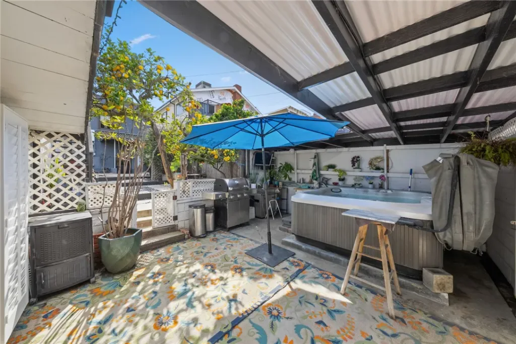 Step outside to your private backyard retreat via a mudroom featuring a covered patio with jacuzzi, ambient lighting, and TV — perfect for relaxing or hosting gatherings. Enjoy a chicken coop, mature fruit trees (orange and lemon), private laundry room, and additional basement storage. A detached bonus room with fireplace offers endless possibilities as an office, gym, studio, or creative space.