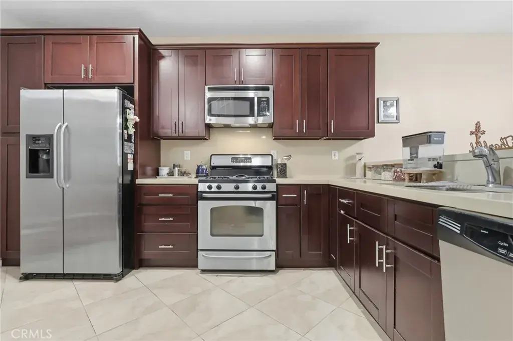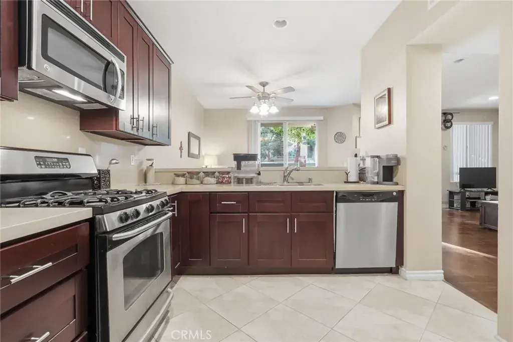 The remodeled kitchen is a chef’s delight with gleaming quartz countertops, stainless steel appliances, and sleek cabinetry that offers plenty of storage and prep space. Whether it’s a quiet dinner or a lively BBQ, this home is made for making memories.