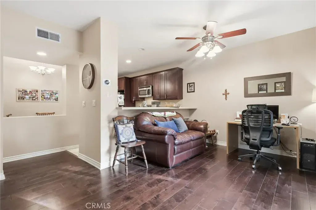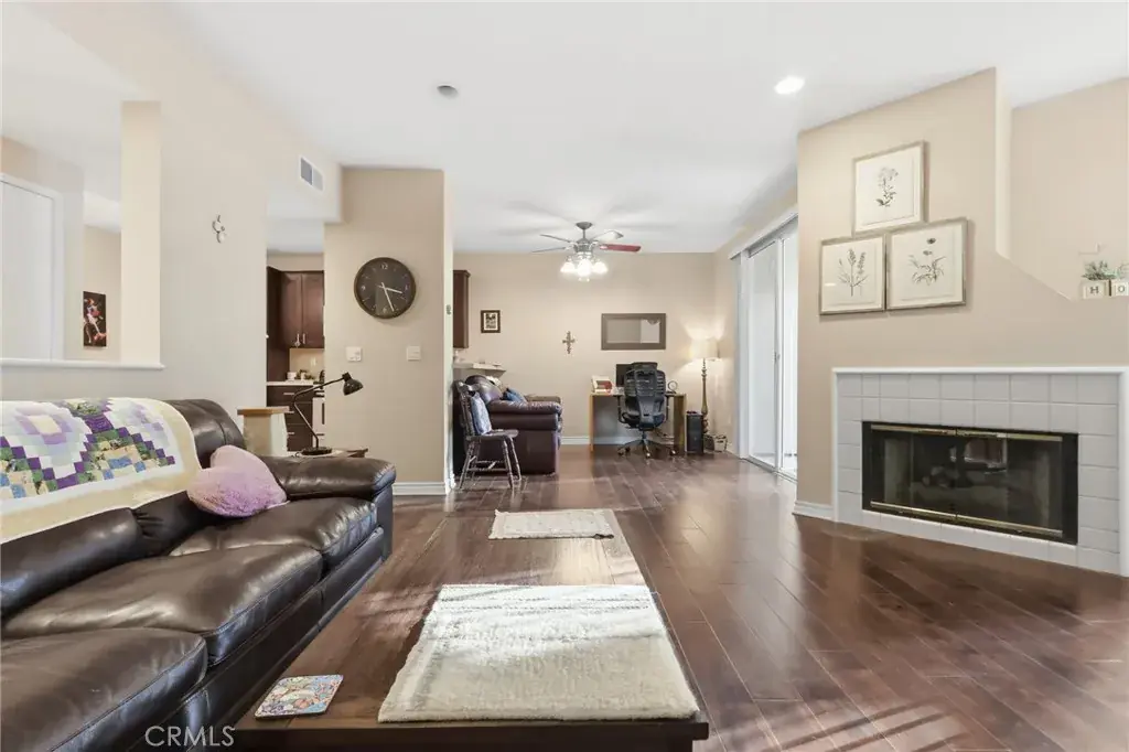 Step inside and be welcomed by rich hardwood floors, soaring ceilings, and sophisticated finishes that create a bright, open, and contemporary vibe. The inviting living room features a cozy fireplace and recessed lighting, seamlessly flowing into a dining area and a kitchen that opens to a private patio—ideal for relaxing evenings or entertaining under the San Pedro sky.