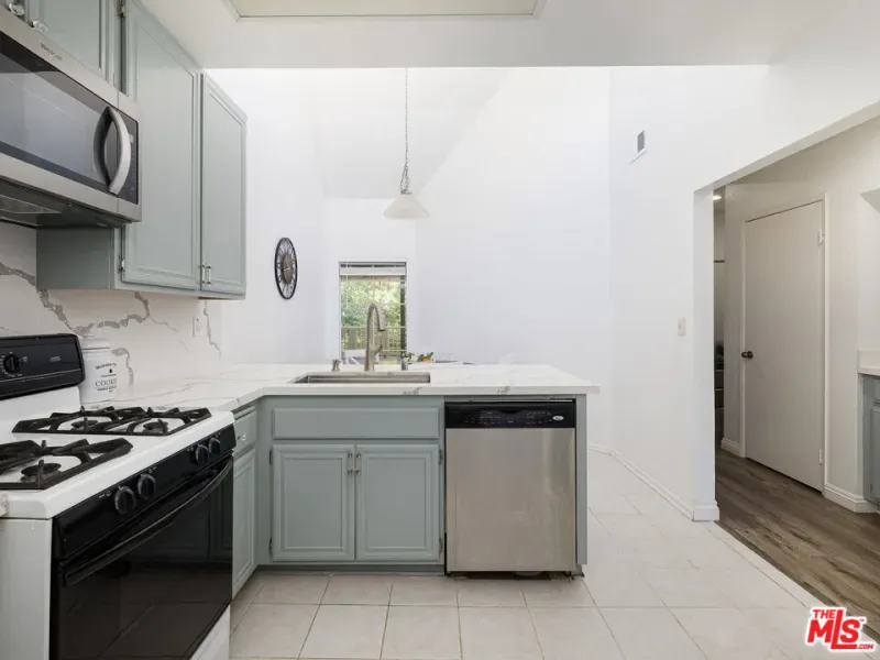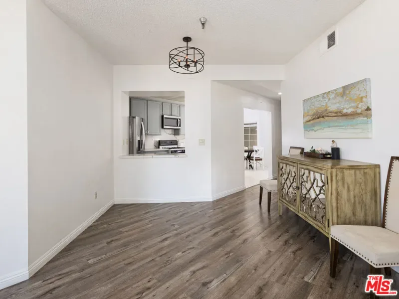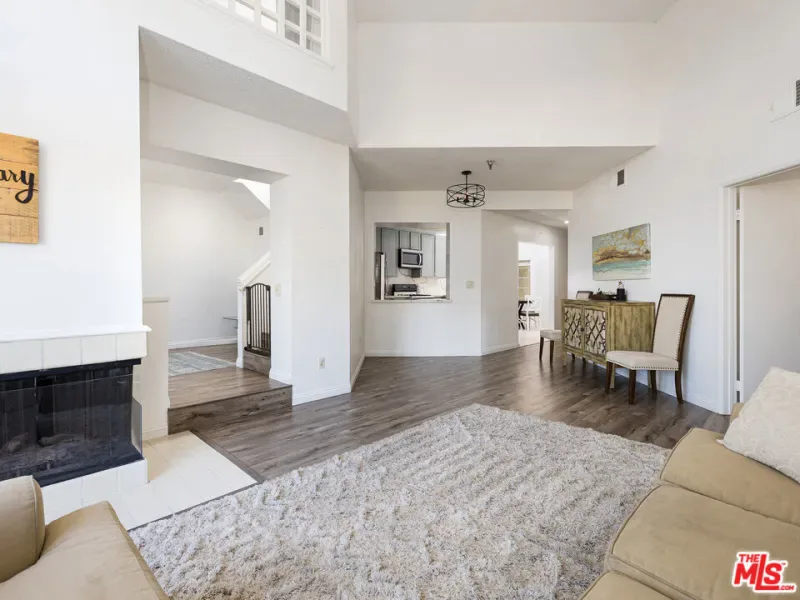 Picturesque condo that is nestled at the end of a cul-de-sac in coastal San Pedro. The serene community has private gated parking and is built around a treelined area of the city. Oak colored floors adorn the entrance to this lovely condo which are complimented by pure white colors, walls that continue to rise up to impressive vaults that can be enjoyed in the dining room and again in the large family room. The airy expanse invites tremendous light to pour in the volumed space organically. The entire structure is protected by a woodland area that welcomes local bird life, which gently fills the home with pleasant singing, a testament to this homes peaceful nature. A large balcony breathes in views of the port, Palos Verdes hillside, local soccer fields, and encompassing greenery. The dining room has such an open feel that leads right into the updated kitchen that is customized with quartz counters, backsplash, and touches of a beautiful teal hue on all cabinetry that create a welcoming ambiance for friends & family to enjoy home cooked meals. A secondary server off the kitchen is complete with a sink and additional cabinetry plus mirrors which are a huge asset during culinary experiences at home. A wonderful bedroom overlooks lush plant life plus walkway and tons of sunlight from the front of the home. There is a laundry room inside and this condo happens to be one of the biggest in the complex. The family room has an attached sitting room that has sweeping views and a cascading staircase that lifts up to an amazing loft. The loft can be left to the imagination of the owners to be a den, hangout, kids playroom, or boardgames area. Luckily, the complex is positioned to be walking distance to theaters, restaurants, shopping, and a short distance to freeway access. The gated garage comes with 2 spaces. There is an elevator that goes from the private parking up to the top floor. The primary room is an incredible secluded sanctuary. The vaults in this area add another layer of gratitude to the living space which mark an incredible difference, living on the top floor. There’s a lovely his and her closet and his and her sinks side by side that complete this part of the home.