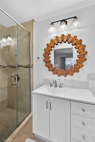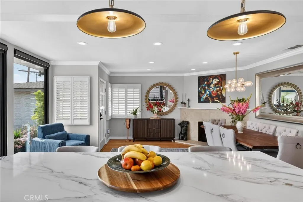 This is a beautiful 4-bedroom 3 bath home. This exceptional property is registered with the LA Home-Sharing Ordinance for the private rental unit and is perfect for owners seeking additional income or multi-generational living. The main living quarters is 3 bedroom 2 bath with a beautiful open-concept living, kitchen and dining combination with a wood burning fireplace, recessed lighting, hardwood flooring, central air and heat and natural light from commercial-grade front windows with custom remote-controlled blackout blinds. The upgraded kitchen includes a 90 x 42 quartz island with built-in outlets, custom drawers, quartz countertops, granite kitchen sink, travertine flooring, new five-burner Cosmo stove, LG microwave, new InstaView refrigerator and dishwasher. The laundry room has a new LG washer and dryer. The bright primary bedroom suite and two secondary bedrooms all continue with the hardwood flooring and have ceiling fans. The main living space bathroom is beautiful with a custom mirror, recessed lighting, travertine floors and shower walls, a bathtub and new fixtures. The primary bedroom suite includes a private bathroom with a custom mirror, travertine shower, and new fixtures. The unit/mother-in-law quarters (1-bed 1 bath) has a private separate entrance through the garage or an outside gate. It has a large bedroom, big windows and a large closet. The living, dining, and kitchen area is combined in a open layout with a gas fireplace. There are all new appliances, quartz countertop, oversized granite sink, dishwasher, gas range, microwave, garbage disposal and Bosch refrigerator. The unit also has high-end stackable washer and dryer laundry closet. The brand-new bathroom features a modern tile shower, a vanity with a mirror and new faucet, plus ample storage. This property is NOT in the rent control area of Los Angeles so it is allowed to rent a part of the owner’s primary residence for short term rentals and is registered with the city to be rented on Airbnb, VRBO, etc. The rental income of in-laws/ separate unit is averaging two weeks per month generating $2,000 per month. It would also make a beautiful space for a family member to enjoy. The inviting backyard has custom stone work, paver patio, and the fire pit seating area. The backyard boasts several beautifully landscaped garden areas, with plenty of space and potential for a future pool, surrounded by beautiful palm trees and birds of paradise.