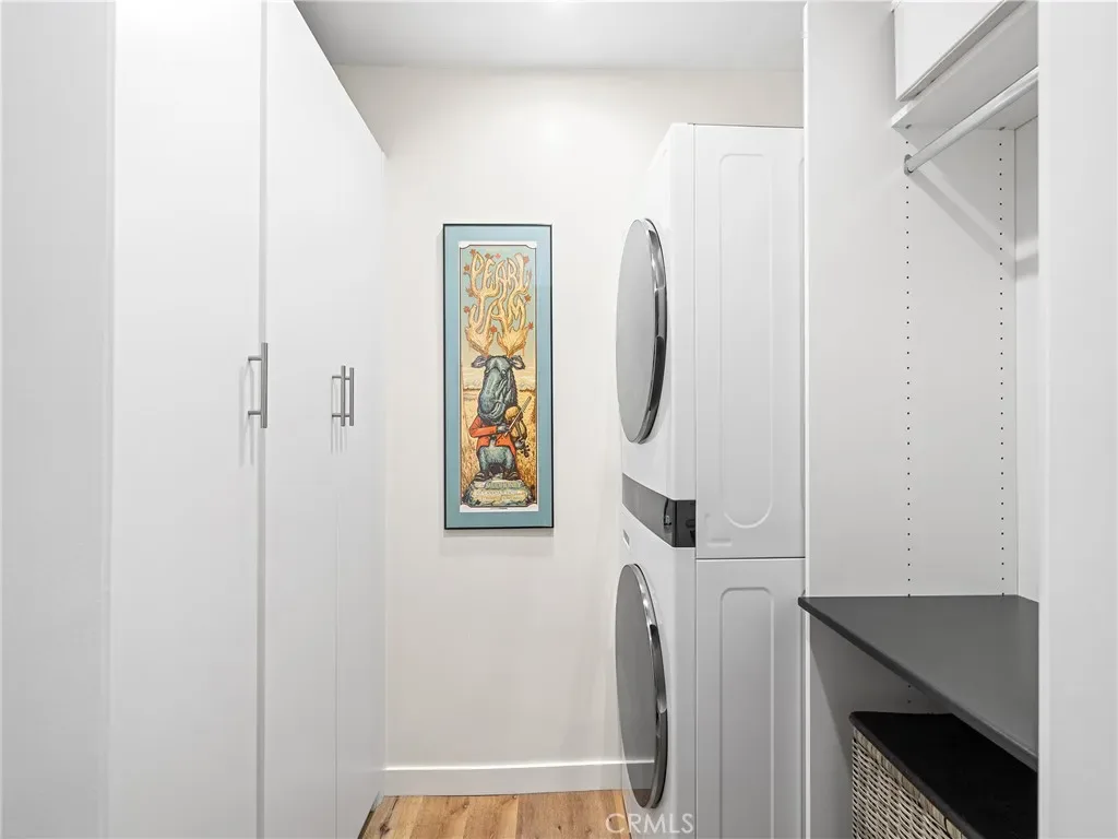 Downstairs, the primary suite offers refined comfort with plush new carpeting, a custom built closet, and a spa-inspired primary bathroom. Although originally marketed as three-bathroom units, these residences have always only included two toilets. The downstairs bath was originally designed in a Jack-and-Jill layout with a tub and a very small sink on one side and a vanity on the other side. To say this condos primary bath has been remodeled, is an understatement! The primary bedroom has a private west-facing yard, ideal for pets, sun-soaked lounging, or outdoor entertaining. The second bedroom provides an outdoor garden area with a tranquil backdrop—perfect for guests or as a home office or gym—and features a custom-built walk-in closet. A thoughtfully designed laundry room with built-in storage adds everyday convenience.