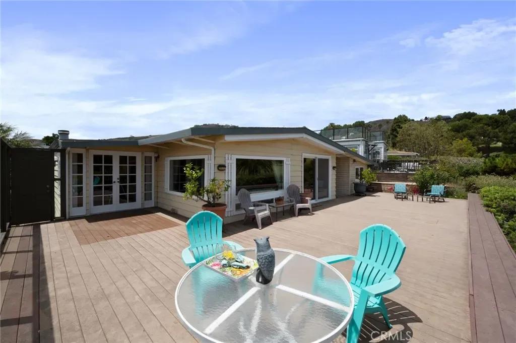 AMAZING 1,000 sq ft Wrap-Around Deck with Breathtaking Views! Perched right on the golf course, this exceptional 1,900 sq ft manufactured home offers the ultimate coastal lifestyle with sweeping views of the ocean, Catalina Island, the golf course, and green belts. The expansive, wrap-around deck is the perfect spot to soak in the views and entertain guests in style, blending indoor/outdoor living seamlessly. Inside, the home boasts a spacious, open-concept floor plan with an abundance of natural light. The living and dining areas feature a wall of glass doors that open to the massive deck, allowing for a perfect flow from the indoors to the outdoors. The cozy family room is centered around a charming fireplace and French doors that lead directly to the deck, where you can relax and enjoy the stunning vistas. The galley-style kitchen offers a large breakfast bar and ample storage space, making it perfect for both casual meals and entertaining. The luxurious primary suite includes an ensuite bath with dual vanities, a deep soaking tub, and a separate shower. The second spacious bedroom is a versatile space with double closets, built-in bookshelves, and a built-in desk—ideal for a home office or guest room. There’s also a convenient guest bath and an indoor laundry area. For added versatility, there’s a detached office with a golf course view, featuring built-in cabinetry and a desk, as well as a separate workshop for all your hobbies. The home comes with an oversized 2-car carport and a dedicated golf cart garage, along with extra parking. Living in the vibrant Palos Verdes Shores community offers a wealth of amenities, including a 9-hole Par 3 ocean-view golf course, heated pool, spa, sauna, tennis and pickleball courts, basketball, ping pong, a dog park, gardens, a newly renovated clubhouse, and a fitness center—all included with no additional golf fees. Whether you’re enjoying a round of golf, taking in the views on scenic hiking trails, or relaxing on your deck, this community embraces a relaxed, connected coastal lifestyle. Located just minutes from the stunning Terranea Resort, the Trump Golf Course, upscale dining, shopping, and iconic SoCal beaches, Palos Verdes Shores is truly a hidden gem. Experience the resort-style living you’ve been dreaming of—make it yours today! And there are NO property taxes!