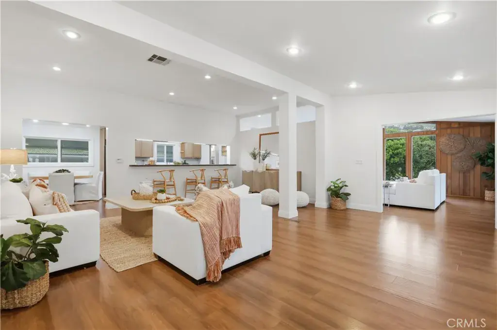 Capture unforgettable sunrises, peek ocean views, and serene greenbelt scenery from this FABULOUS move-in-ready home, ideally located on a private cul-de-sac in the highly sought-after South Shores neighborhood of Palos Verdes Shores. Thoughtfully remodeled, the home features an open floor plan with an expanded kitchen and dining area, built-in cabinetry, soaring ceilings, and abundant natural light from walls of glass, skylights, and recessed lighting. Recent upgrades include a newer roof, ducting, upgraded windows and doors, high-quality wood laminate flooring, new pavers, and a newly tiled deck and landscaped lawn. The spacious dining and family room open seamlessly to an oversized outdoor tiled deck and porch, perfect for relaxing or entertaining. The primary bedroom offers beautiful views and a spa-inspired bathroom with a walk-in shower with “his and her” shower stations. Generous closets, ample storage, and storage sheds provide exceptional functionality. The approximately 80’x70′ lot offers a peaceful yard overlooking mature trees and lush foliage, creating a tranquil, private setting. Extra parking is conveniently located near the home. Palos Verdes Shores is a 24-hour guard-gated community offering true resort-style living, with coastal trail access, an exclusive 9-hole golf course, tennis courts, swimming pool, hot tub, fitness center, sauna, dog parks, and car wash. The recreation center features lounges, a banquet hall, billiards, a restaurant-style kitchen, piano, stage, and shuffleboard. Enjoy monthly activities including golf league, water aerobics, yoga, meditation, mahjong, pickleball, and more. An on-site beauty salon offers hair, massage, and nail services. Ideally located near fine dining, shopping, grocery stores, golf courses, and luxury resorts—just minutes from downtown, LA and LAX—this home offers the perfect blend of comfort, convenience, and resort living. Coastal living at it’s finest! Owner May Carry!
