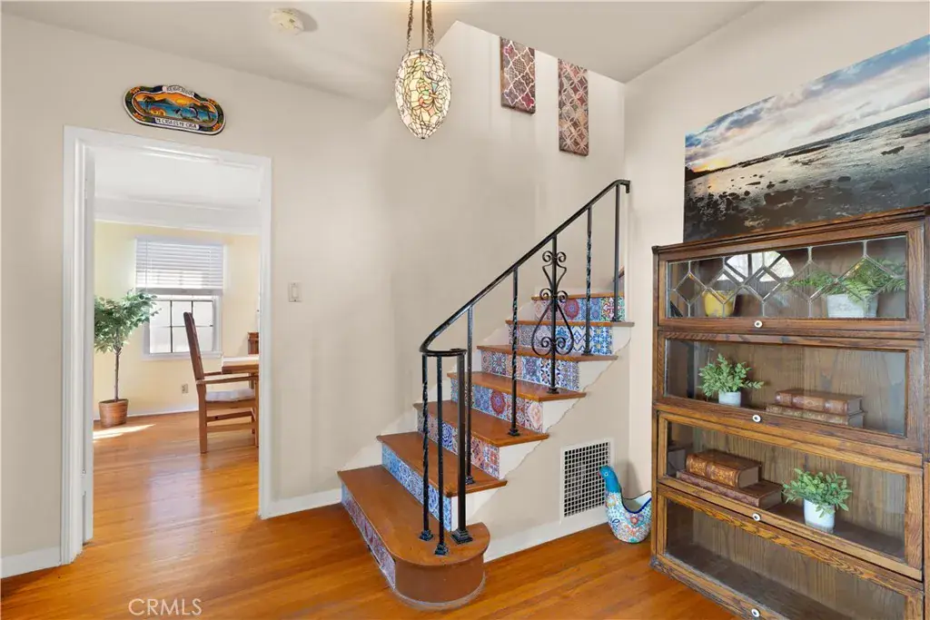 DON’T MISS OUT ON A FABULOUS HOUSE BECAUSE IT’S ON GAFFEY! HOME SITS HIGH ABOVE THE STREET! CLASSIC HOME AND AN UNOBSTRUCTABLE VIEW! This timeless 1937 Spanish-style home captures sweeping views of the Los Angeles Harbor and the iconic Vincent Thomas Bridge. Arched windows and classic architectural details set the tone, while original hardwood floors add warmth and character throughout. The spacious living room features coved ceilings, and a wood burning fireplace with an oak mantle and stone facing as its centerpiece. Many windows bathe the space in bountiful sunlight and harbor views can be seem from almost every room in the house! With over 1,700 square feet, the floor plan is both generous and functional. The large formal dining room flows into a beautifully remodeled kitchen, appointed with hickory cabinets, granite countertops, stainless steel appliances (including a French door refrigerator), and a convenient wet bar/prep sink. A built-in office nook and a garden window overlooking the lush backyard add both style and utility, while the adjacent laundry room provides even more storage and pantry space. An updated ¾ bath completes the first level. As you make your way up the winding staircase with its original iron railing, you’ll find two spacious bedrooms – one with dual closets, including a walk-in! There is also an updated full bathroom. A versatile bonus room (perfect for a nursery, office or creative space) opens to a shaded veranda overlooking the backyard. The backyard is a true retreat—boasting a mature avocado tree heavy with fruit, a wide grassy area, a large entertaining deck, and a Tuff Shed for extra storage. Alley access to a two-car garage completes the property. Over time, this property has been updated with dual pane windows, newer FAU, water heater (2021), and even drain and sewer line upgrades. There is added storage in the (easily accessible) basement. Surrounding new construction can only increase your home’s value! This property is well located close to everything you need, and not far to the Marina, Cabrillo Beach, AltaSea, Cabrillo Marine Aquarium, Crafted and so much more! The main attraction is the upcoming West Harbor waterfront, with new restaurants, shops, an amphitheater and even a Ferris Wheel! This home blends historic charm with thoughtful updates, all in a hillside setting with amazing harbor views.
