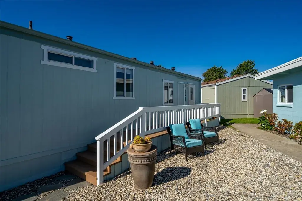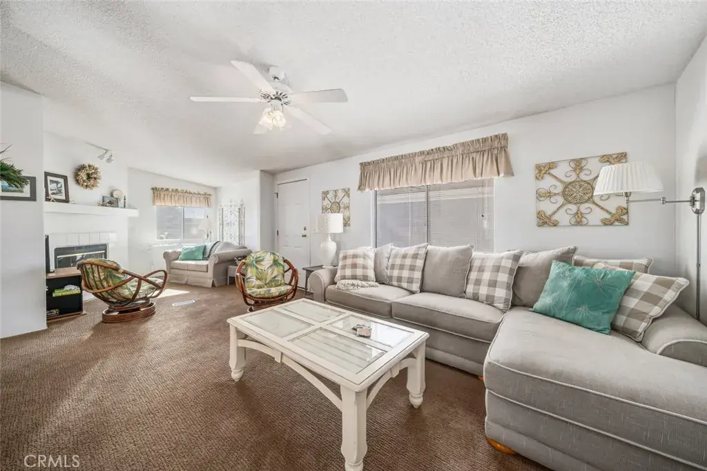 Dreaming of a coastal lifestyle where nature and comfort merge effortlessly? This fully furnished, single-story 2-bedroom, 2-bath manufactured home in the 55+ community of Pine View Mobile Home Park delivers, whether staying year-round or as a seasonal retreat! Inside, vaulted ceilings and sunlight from wide windows create an open, inviting feel, with thick carpet underfoot and a corner fireplace in the living room for casual evenings. The eat-in kitchen features warm, wood-toned cabinetry, a breakfast bar, and modern appliances, making entertaining easy.