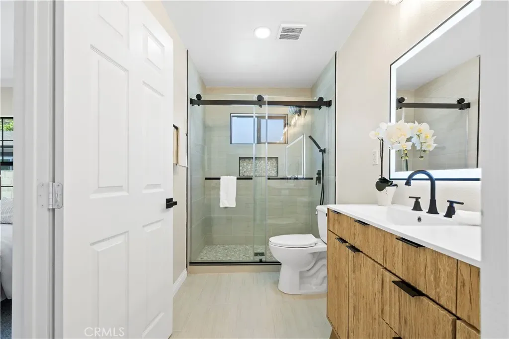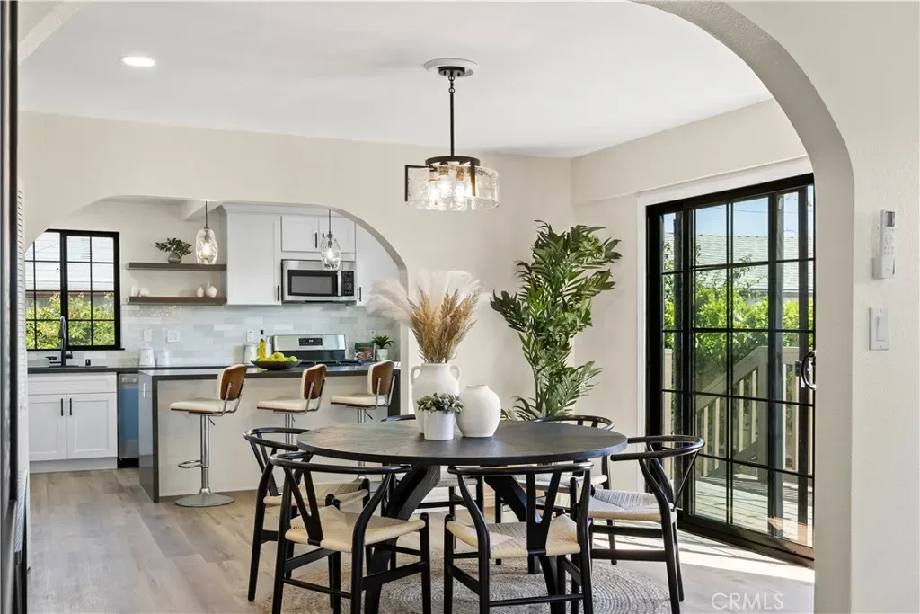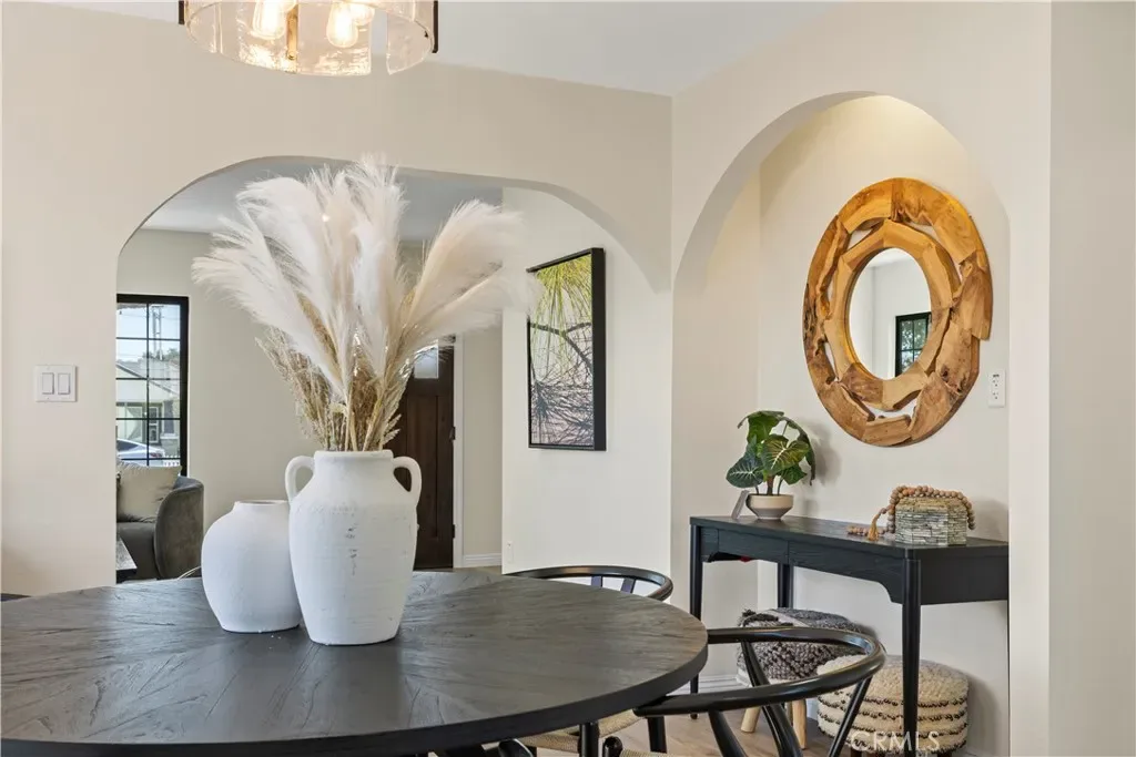 This masterfully renovated 1924 Spanish-style gem in Santa Ana’s coveted Madison Park neighborhood artfully blends timeless hacienda charm with sleek modern elegance and vibe. Set on a picturesque tree-lined street with a classic brick walkway and welcoming front steps, the home welcomes you into a bright, open-concept living space designed for effortless living and memorable gatherings. The house boasts sweeping archways, a modern fireplace, new windows, new floors, new foundation, new electrical, new plumbing, new kitchen, new bathrooms, the works!!! At the heart of the home, the kitchen invites peace and joyful moments around the generous island as it flows seamlessly into the spacious dining room. The entire living area unfolds thoughtfully, from the comfortable family room to the dining room to the kitchen, creating one expansive, light-filled zone perfect for entertaining or quiet evenings at home. Three well-apportioned bedrooms and two luxurious bathrooms offer refined comfort and rest. Step outside to your private backyard oasis, where a twinkle-lit dining deck and elegant pergola create the ideal setting for al fresco dinners under the stars. Fully fenced for privacy yet warmly connected to neighbors and community, this single-story retreat delivers the perfect balance of serenity and connection in one of Santa Ana’s most sought-after pockets.