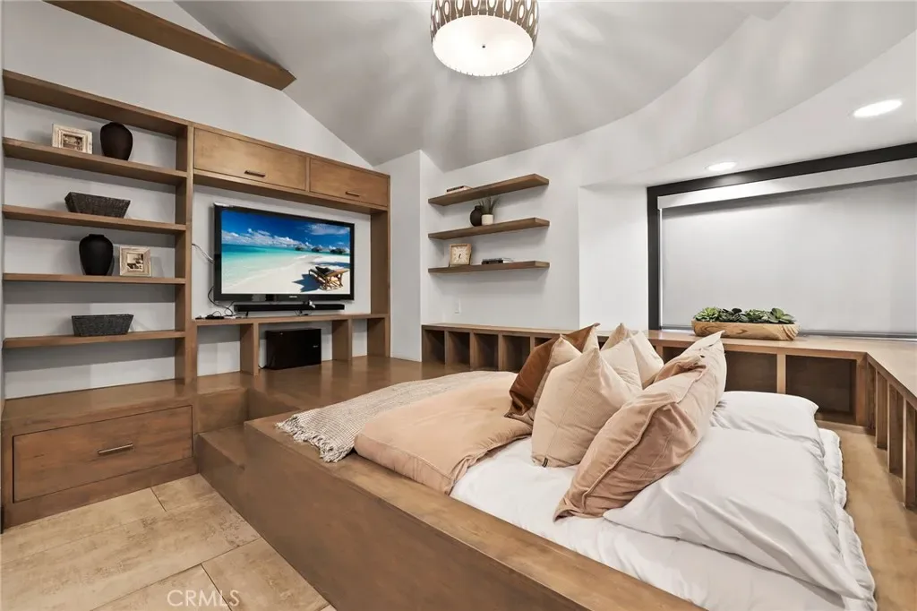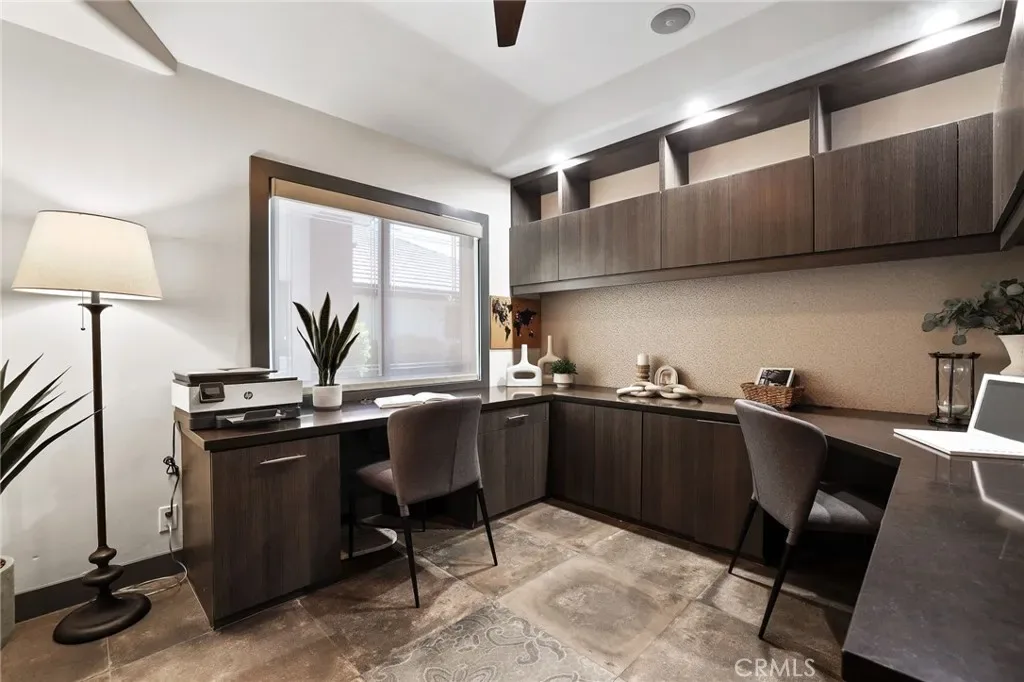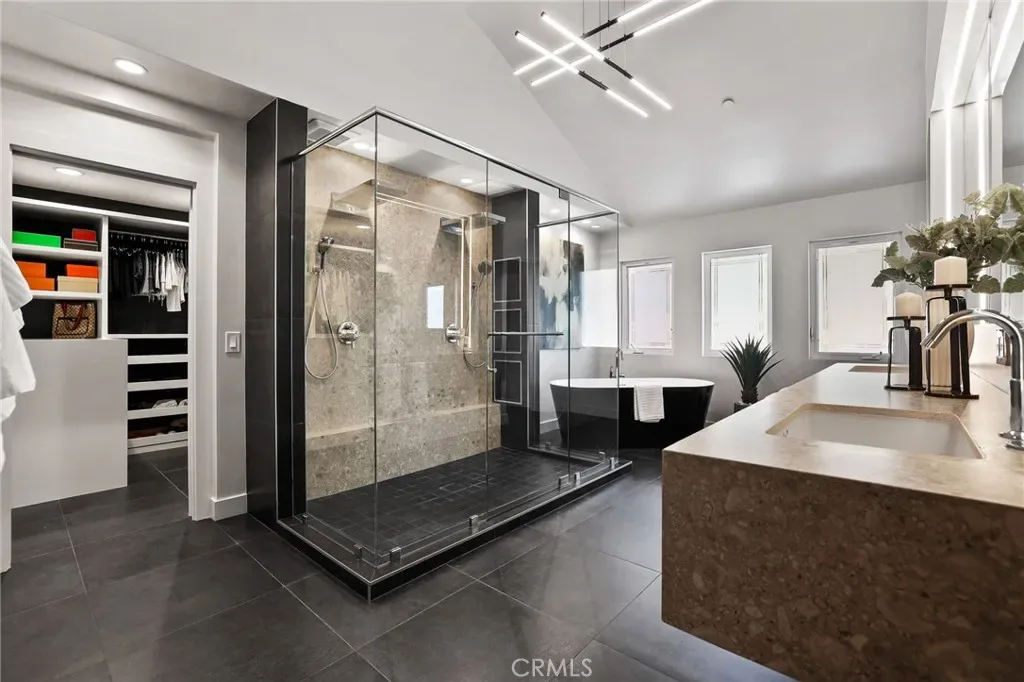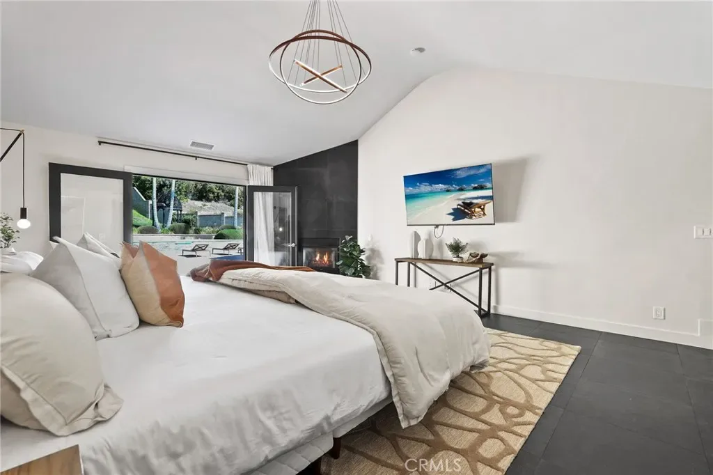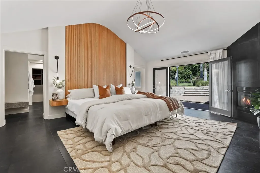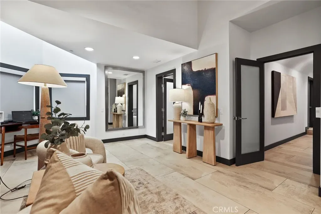 A truly one-of-a-kind single-level estate set on an expansive, flat, and fully usable 37,500+ square foot lot—offering a rare blend of scale, privacy, and lifestyle. The backyard sets the tone for the entire property—an immersive, resort-inspired retreat designed to elevate everyday living. A striking pool and spa serve as the focal point, surrounded by lush, professionally curated landscaping, fruit trees and an impressive motor court with ample space for RV and boat storage. A vaulted, wood-paneled pavilion and built-in BBQ entertainment island create an exceptional setting for hosting, while French doors open to a private casita exclusively accessed from the backyard. Inside the home, a separate staircase leads to a second private casita above the garage, offering both interior and exterior access—each complete with its own kitchen and full bath—seamlessly extending the outdoor living experience. All of this is tucked behind a private motorized gate, creating a grand sense of arrival that feels both exclusive and effortless. Inside, approximately 7,082 square feet of thoughtfully designed living space unfolds with a focus on scale, light, and architectural intention. The open-concept layout flows effortlessly through the main living areas, anchored by a showstopping, architecturally designed kitchen featuring dual oversized islands, bespoke flat-panel cabinetry, new professional-grade appliances, and sleek modern finishes. Walls of glass invite abundant natural light while blurring the line between indoor and outdoor living. Rich materiality defines the interiors, with custom stone accents, matte porcelain flooring, and soaring ceilings that create a warm yet contemporary aesthetic. Designed for flexibility and longevity, the home offers dual primary suites—one featuring a fireplace—along with two private casitas: one with exclusive exterior access and another above the four-car garage with both interior and exterior entry, each complete with its own kitchen and full bath. A library and additional ensuite bedrooms further enhance the home’s versatility. Complete with a state-of-the-art security system and perimeter cameras, the property offers both privacy and peace of mind. Ideally located moments from Crawford Canyon Park, this exceptional estate delivers a rare combination of presence, design, and resort-style living in one of North Tustin’s most sought-after neighborhoods.