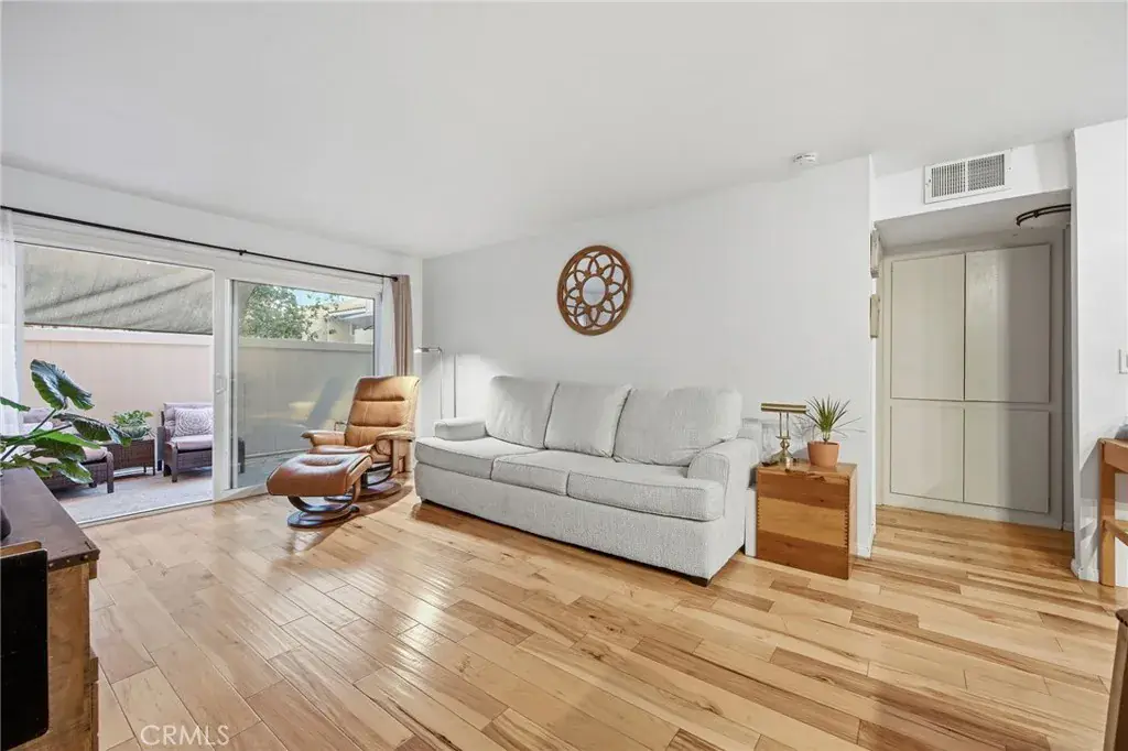 Corner Ground Level 1 Bedroom Condo is in Move in Condition and Pride of Ownership. It has an Expanded Kitchen with Granite Counter tops, Dining Area – (used for office space). the Kitchen is Opens to the Living Room that has Direct Access to the Large Private Patio with an Umbrella and Shade that will remain. The flooring is Engineered Hardwood Throughout. ( sturdy and pet friendly). Great location in the community near the pool and laundry room. The HOA fees includes Water, Gas, Trash and Maintenance to the Common Areas. This is a Gated Community that Offers 2 Pools, Spa, BBQ Area, Playground, ClubHouse. South Coast Metro Area, Near Shopping Center, easy Access to the 405 Freeway, minutes away from Costa Mesa.
