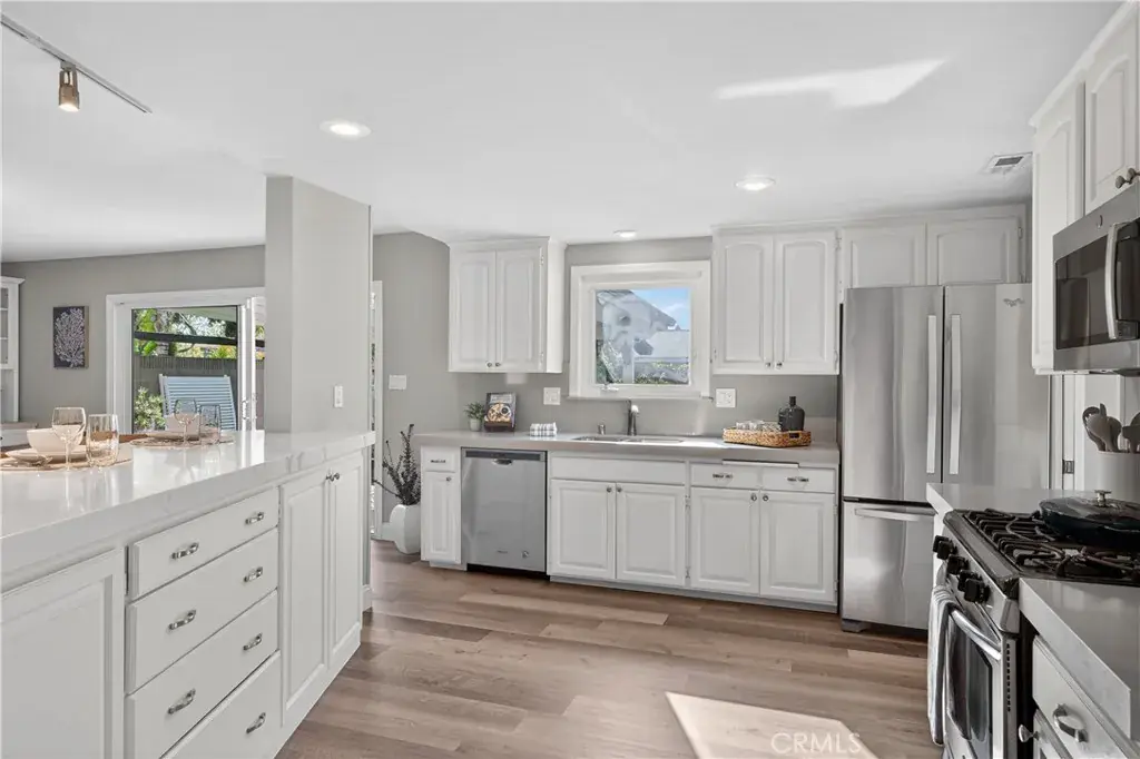 Amazing price for a MOVE IN READY home in an fantastic neighborhood! Located within the award-winning Tustin Unified School District, this beautifully upgraded single-story home features new LVP flooring, a private pool, whole house water filtration system, and fresh interior paint. Offering 3 bedrooms and 2½ bathrooms on a large, flat lot, this 1,772 sq. ft. residence is set in the highly sought after Portola Park neighborhood. Inside, the open concept space is perfect for everyday living and entertaining, with rooms that flow seamlessly from the living areas to the kitchen and dining space, extending through the sliding door to the covered patio and pool beyond. The kitchen is equipped with quartz countertops, stainless steel appliances, ample cabinetry, and open to the living spaces. The primary suite features direct pool access, a remodeled walk-in closet, and an updated ensuite bathroom with a walk in shower and rain shower head. Outside you’ll enjoy the private backyard with a covered patio, mature landscaping, avocado and orange trees, and an outdoor shower. Just minutes from Portola Park with playgrounds, sports courts, fields, and tennis courts, this is one of those homes and neighborhoods you don’t want to miss!