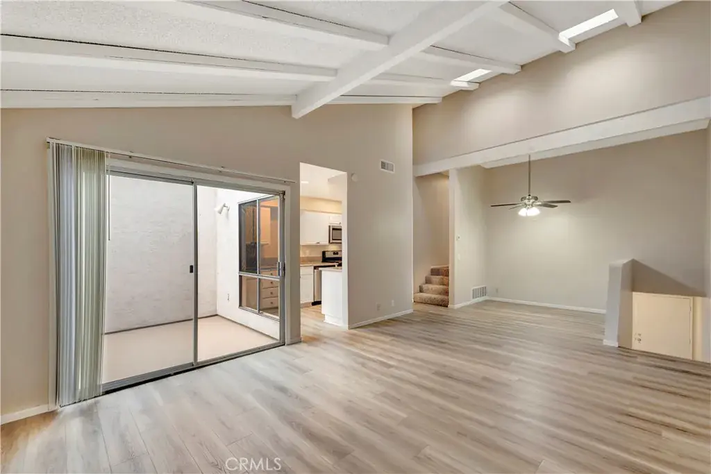 Santa Ana 3-bedroom 2-bathroom townhome located near Fairview and Segerstrom. Perfect for the buyer who wants to just move in, this unit fits the criteria. New vinyl plank flooring is featured in the main living area with soaring ceilings, and an abundance of natural light. The kitchen has natural light and features stainless steel appliances with gas cooking, a built-in microwave, and a new dishwasher. The bathrooms are clean with freshly painted showers. The water heater is newer with an install date of 4-14-2025 and a new electrical sub panel. The community offers two pools and a large grassy Knoll for ambiance. Close to shopping and good freeway access. The double car garage has direct access to the lower level.