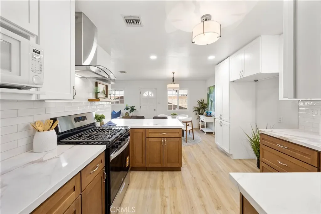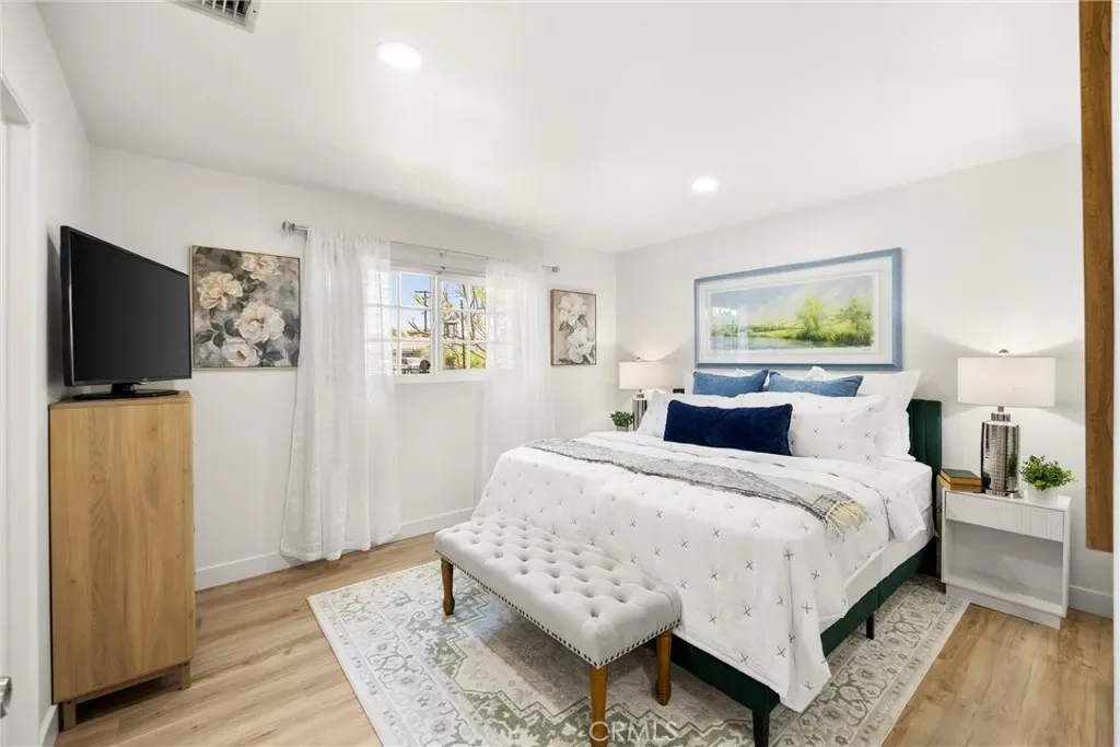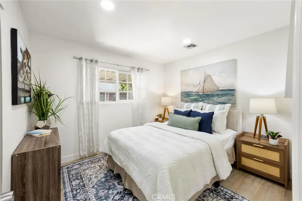 Welcome to this charming, single story home in Santa Ana! This is a wonderful, family-oriented neighborhood within walking distance to Mile-Square Park, religious centers, shopping and dining. Officially, this is a 3 bedroom, 2 bath home with an enclosed Sun Room that can be converted to a 4th bedroom which is the perfect size for an in-law suite! Additional Sun Room has been staged as a 4th bedroom however the square footage (apx 300sf) is not included in the MLS listing. This home has been beautifully updated to include new kitchen cabinets & quartz counters, new 6-burner stove, new dishwasher, new lighting, fresh paint throughout, new bathroom vanities, modern paneling, new luxury vinyl flooring and other modern cosmetic updates. This property has a large lot that features a beautiful front patio, huge RV or boat parking space that could maybe be converted to ADU living space with its own parking and access. Think income-property potential! This is a fantastic property, first time on the market in 43 years!