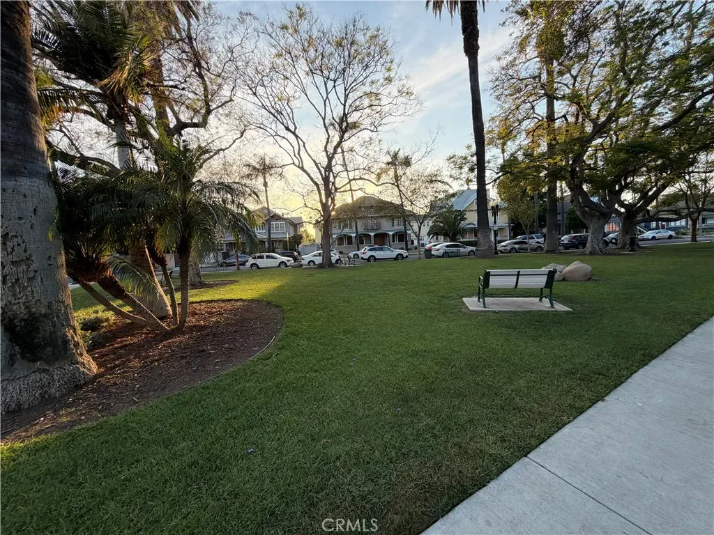 You’re looking out at Historical tree lined “French Park” right from your own living room patio. It’s easy to just sit back and watch the sun set and the world go by. Hard to find 1163 square foot ground floor end unit with a great foorplan includes spacious living room, separate dining room, main bedroom with in suite bathroom, additional nice sized bedroom and full hall bathroom, and an easy to maneuver kitchen with a window overlooking the lush center courtyard. Single detached garage is door #5. The Regency has only 15 total units with a low $198/mo. association dues. This location has great walkability to the heart of what makes Santa Ana tick. Property needs updating but has great bones including classic hardwood floors that need refinishing in addition to needing a fresh paint job and other creature upgrades one might desire. All and all, this would be a fun place to live.