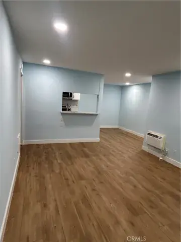 This lower-level 696-square-foot unit features newer vinyl wood flooring, newer dual-pane windows and sliding glass door, and recessed lighting throughout. The upgraded kitchen showcases newer self-closing cabinets and drawers, marble countertops, stainless steel appliances, and a breakfast bar that opens to a spacious dining area—perfect for both daily living and entertaining.