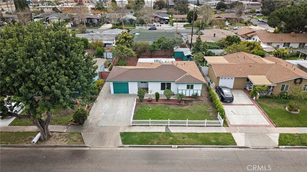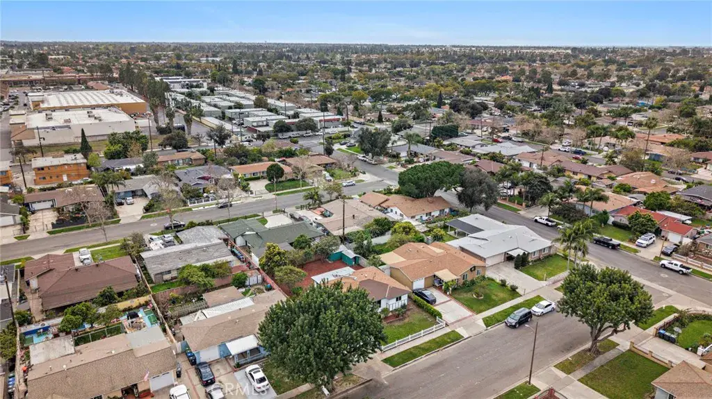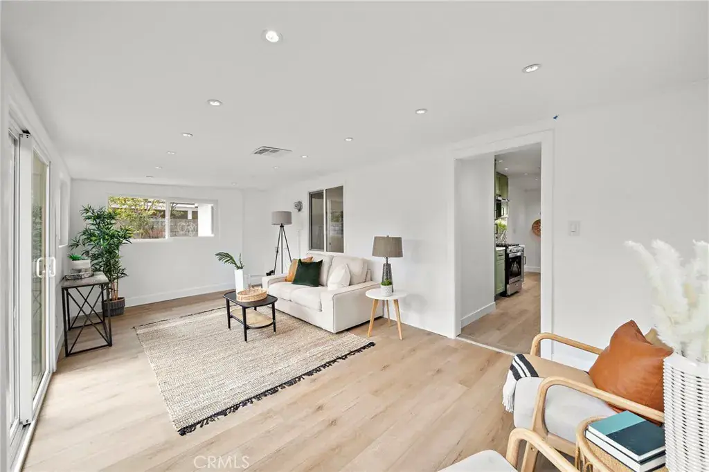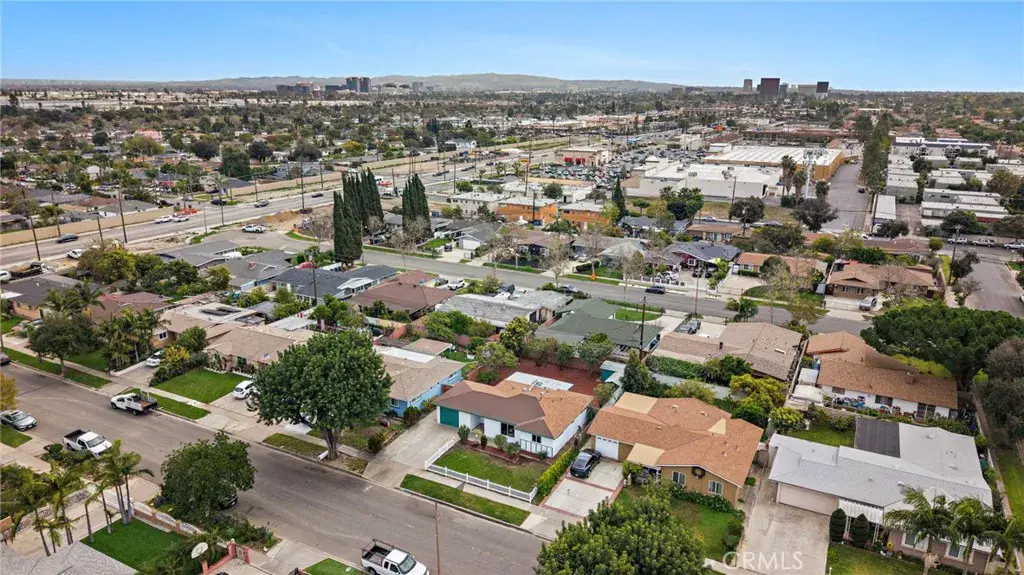 Absolutely stunning and completely remodeled with modern finishes throughout, this charming cottage-style 3 bedroom, 1.5 bath single-level home currently offers approximately 1,288 square feet of living space. Title shows the house with 988 SqFt, plus there is a spacious enclosed patio (approximately 200+ sq ft, not permitted) AND an office/hobby/flex room (approximately 100+ sq ft, not permitted) converted from part of the garage. Both room additions are beautifully finished with same flooring, lighting, windows, and vents to match rest of home. It is located on a quiet cul-de-sac in a pride-of-ownership neighborhood. From the moment you arrive, the home’s inviting curb appeal welcomes you with a lush grassy lawn, colorful gardens, charming white picket fence, and a tiled covered entry. Inside, everything is New! New! New! featuring brand new wood-vinyl flooring throughout, new dual pane windows, new raised panel interior doors, high baseboards, new mirrored closet doors, fresh interior paint, recessed lighting in every room, brand new central A/C and heating system, and ceiling fans in all 3 bedrooms. The light and bright living room flows seamlessly into the completely redesigned kitchen boasting quartz countertops, custom self-closing cabinetry, stainless steel appliances, a farmhouse sink, and an eat-in dining area. The main bathroom has been fully remodeled with a stylish vanity, LED touch-light mirror, and a tub/shower combination with designer tile surround, while the half bath is also brand new and conveniently configured as a Jack & Jill between the secondary bedrooms. The converted enclosed patio is finished to feel like a comfortable family room or bonus room, complete with washer and dryer hook-ups for inside laundry. The single car garage door opens to a storage room. The large wrap-around private backyard is a blank canvas ready for your imagination, featuring block wall fencing, multiple fruit trees including avocado, and two large storage sheds, offering endless possibilities for entertaining, gardening, or a future ADU. Ideally located near shopping, parks, schools, freeways, the vibrant dining and entertainment scene of Santa Ana, and just a short drive to world-class shopping at South Coast Plaza, this turnkey home offers style, comfort, and exciting potential.