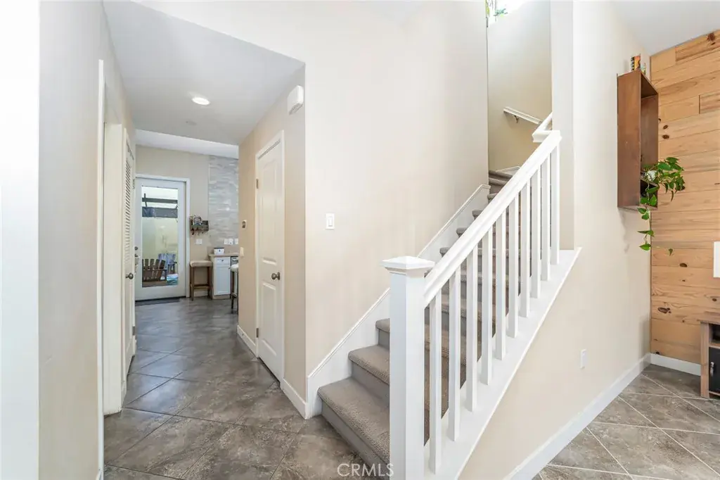 Beautifully reimagined townhome in the heart of downtown Santa Ana. This light-filled 3-bedroom, 2.5-bath residence blends modern design with everyday comfort in a prime urban location. Step inside to an open, inviting layout featuring high ceilings, a neutral palette, and tile flooring. The spacious living area showcases large windows and a custom wood accent wall, creating a warm and stylish atmosphere.
